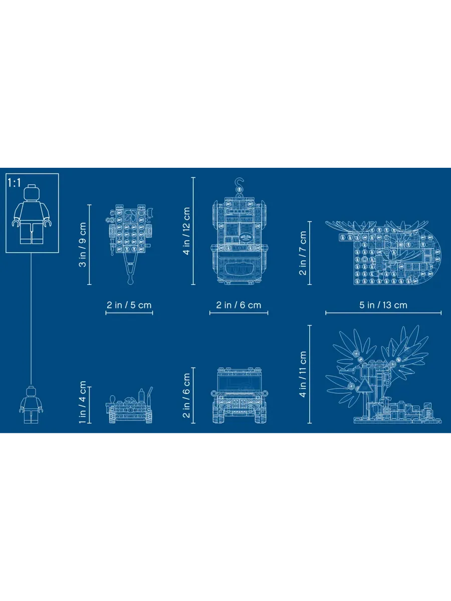 Высота сцены в джунглях составляет более 3 дюймов (10 см), а ширина — 3 дюймов (9 см), поэтому её легко хранить. Она совместима со всеми наборами LEGO, поэтому дети могут отправиться на фиолетовом игрушечном грузовике в гости к любому другому другу, у которого уже есть наборы LEGO.