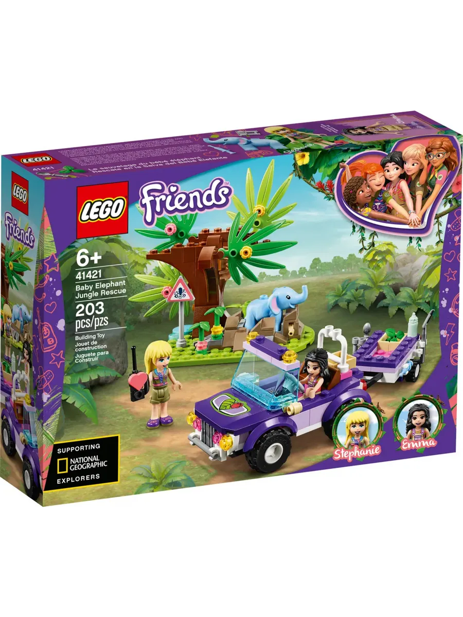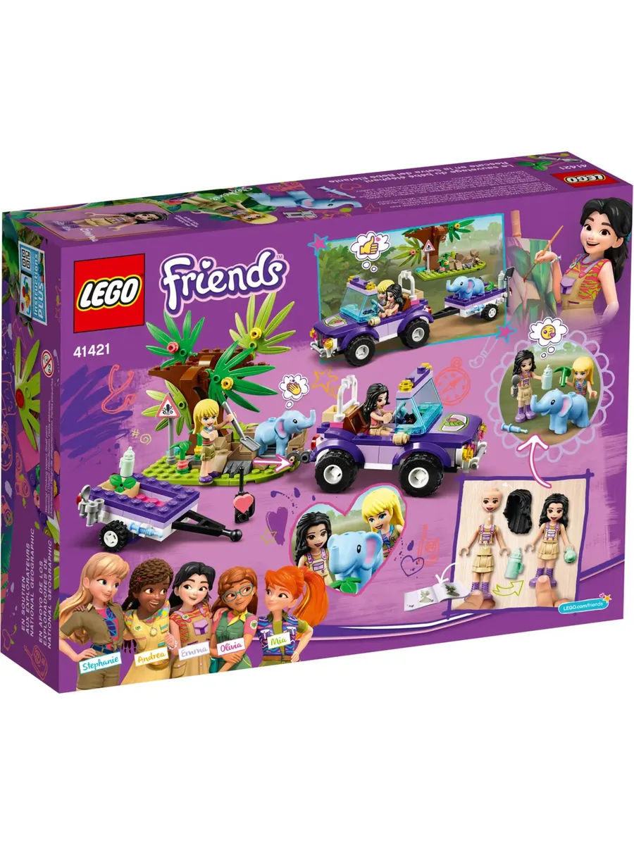 Позвольте детям почувствовать себя героями, спасающими слонёнка из болота! Набор «Спасение слонёнка в джунглях» (41421) наполнен функциями, которые вдохновят на творческие игры. Работая в команде с девочками LEGO Friends, дети могут часами играть в приключенческие игры. LEGO Friends гордится тем, что поддерживает работу National Geographic Explorers.