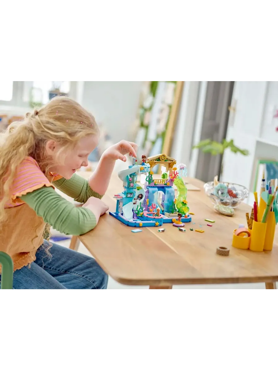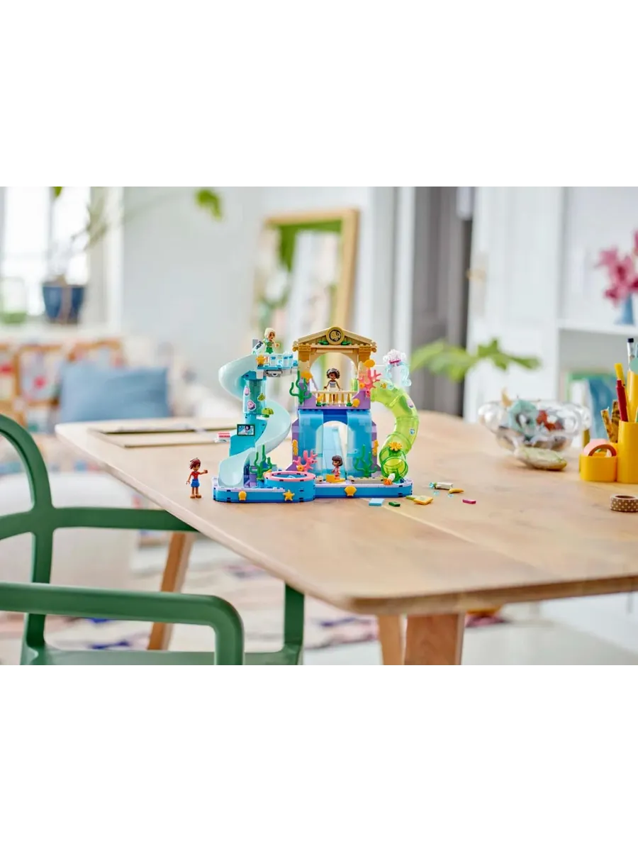 4 персонажа LEGO Friends — в этот набор для конструирования входят мини-куклы Лео, Алия и Сара, а также микрокукла Альба, чтобы дети могли разыгрывать различные приключения в аквапарке вместе с друзьями.