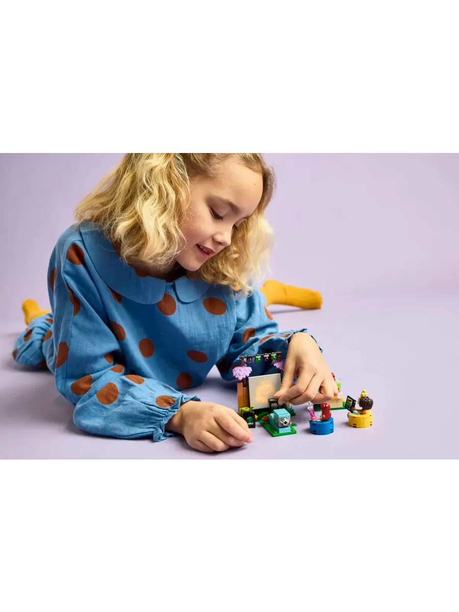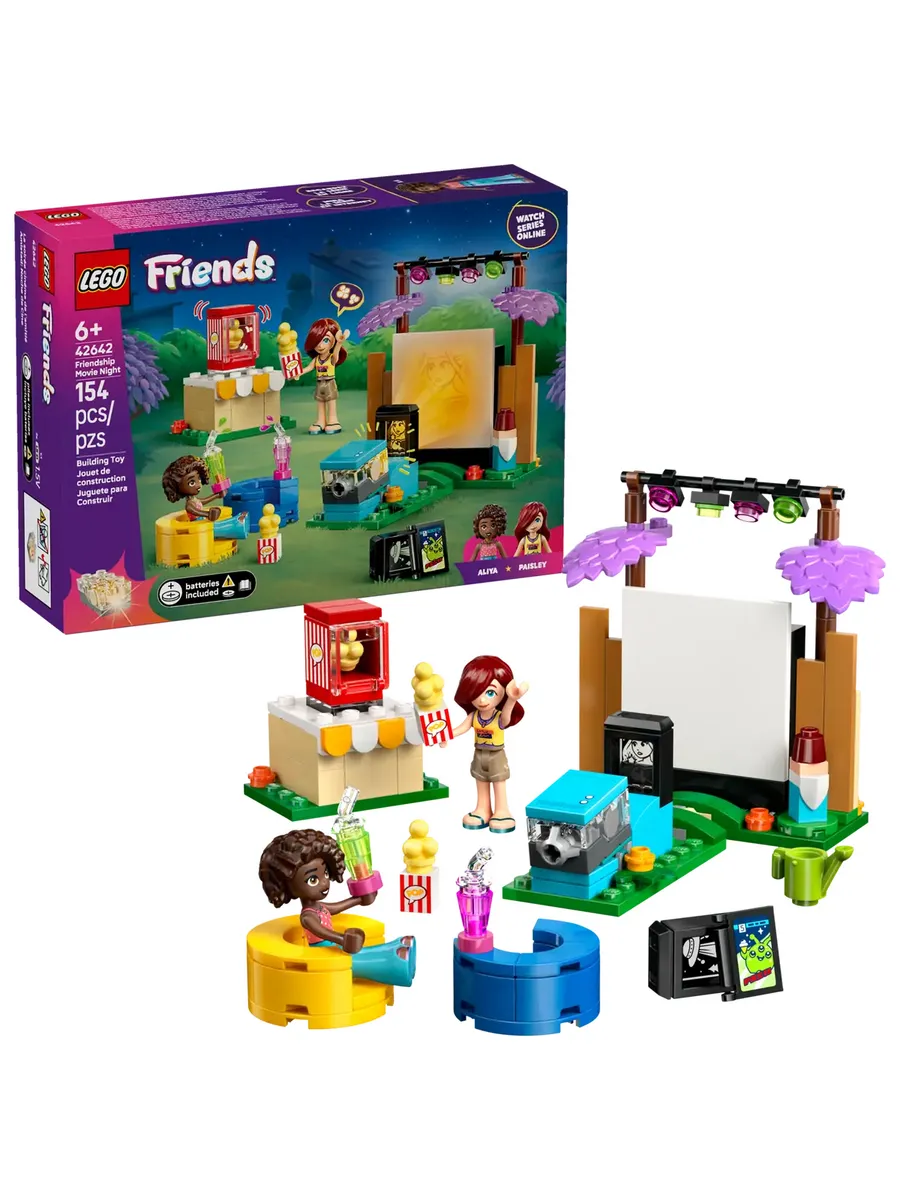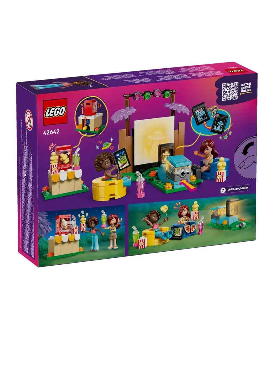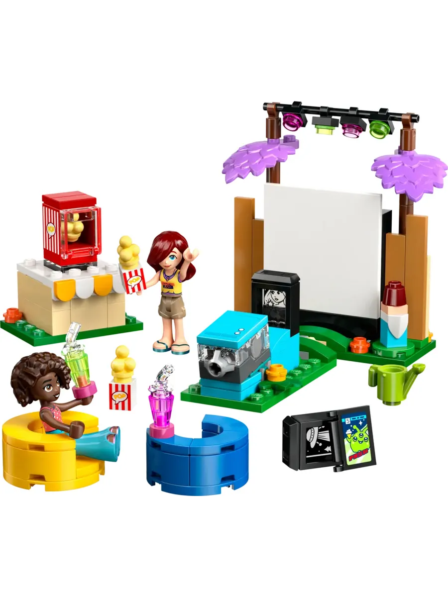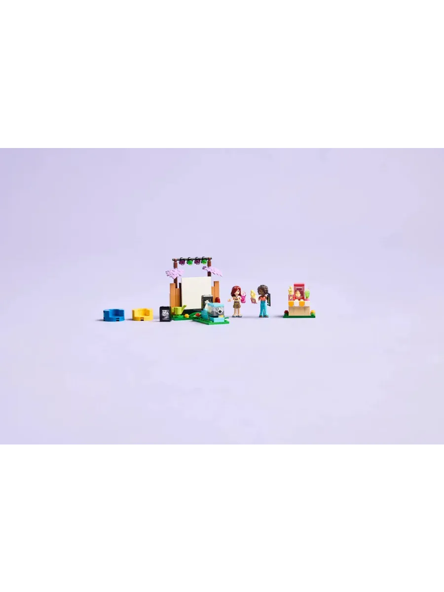 2 персонажа LEGO Friends. Эта игрушка для сюжетно-ролевых игр включает в себя мини-кукол Пейсли и Алию, которые вдохновляют детей на создание различных социальных ситуаций, пока друзья смотрят фильмы в саду Пейсли.