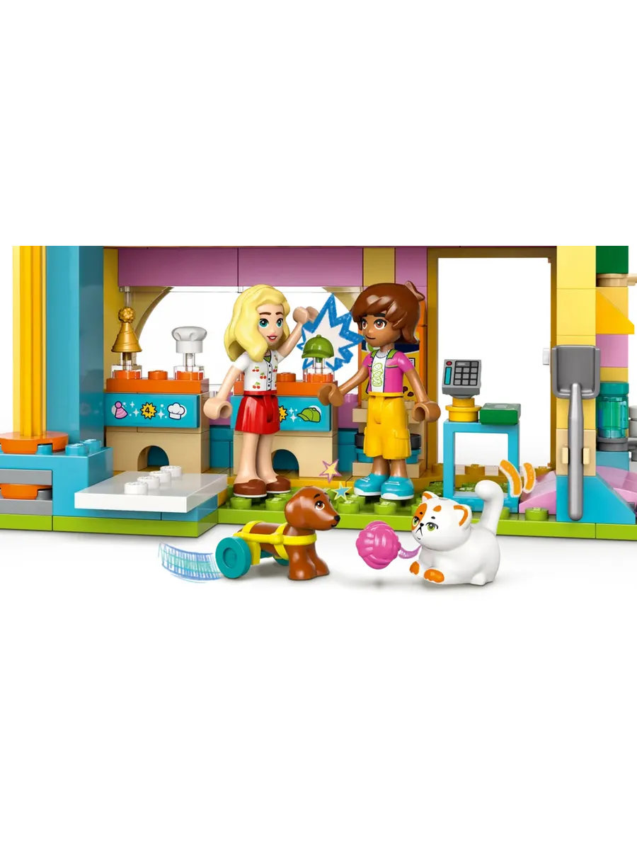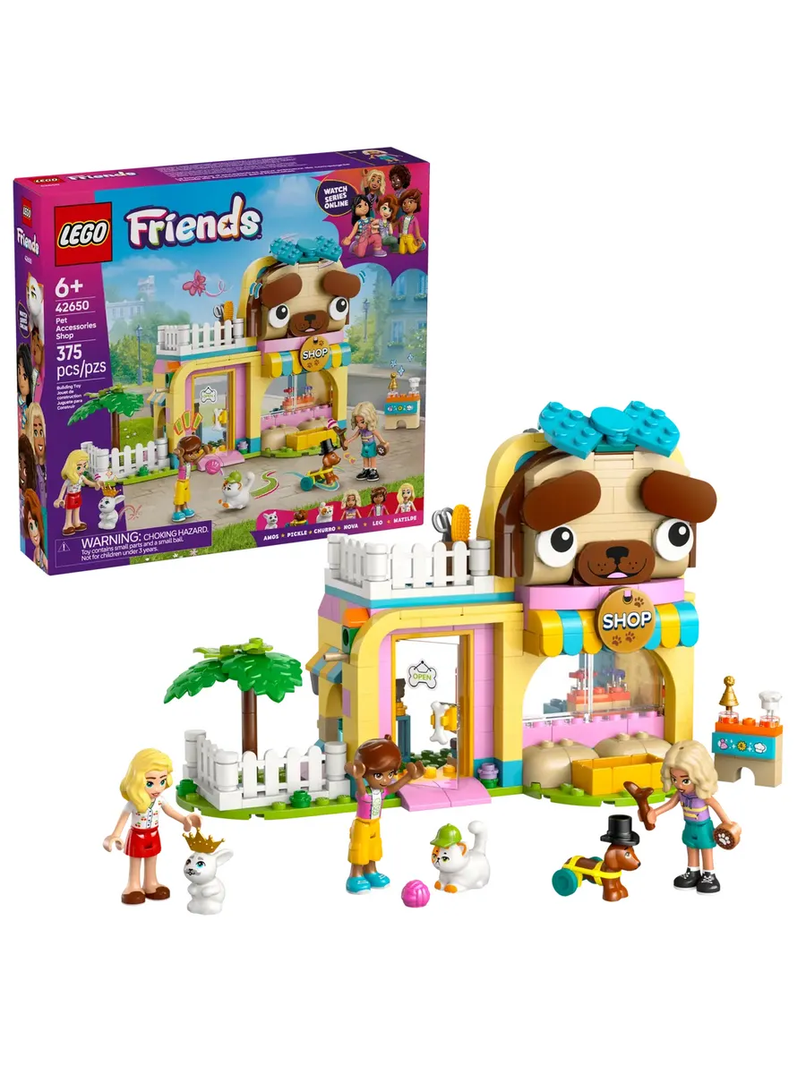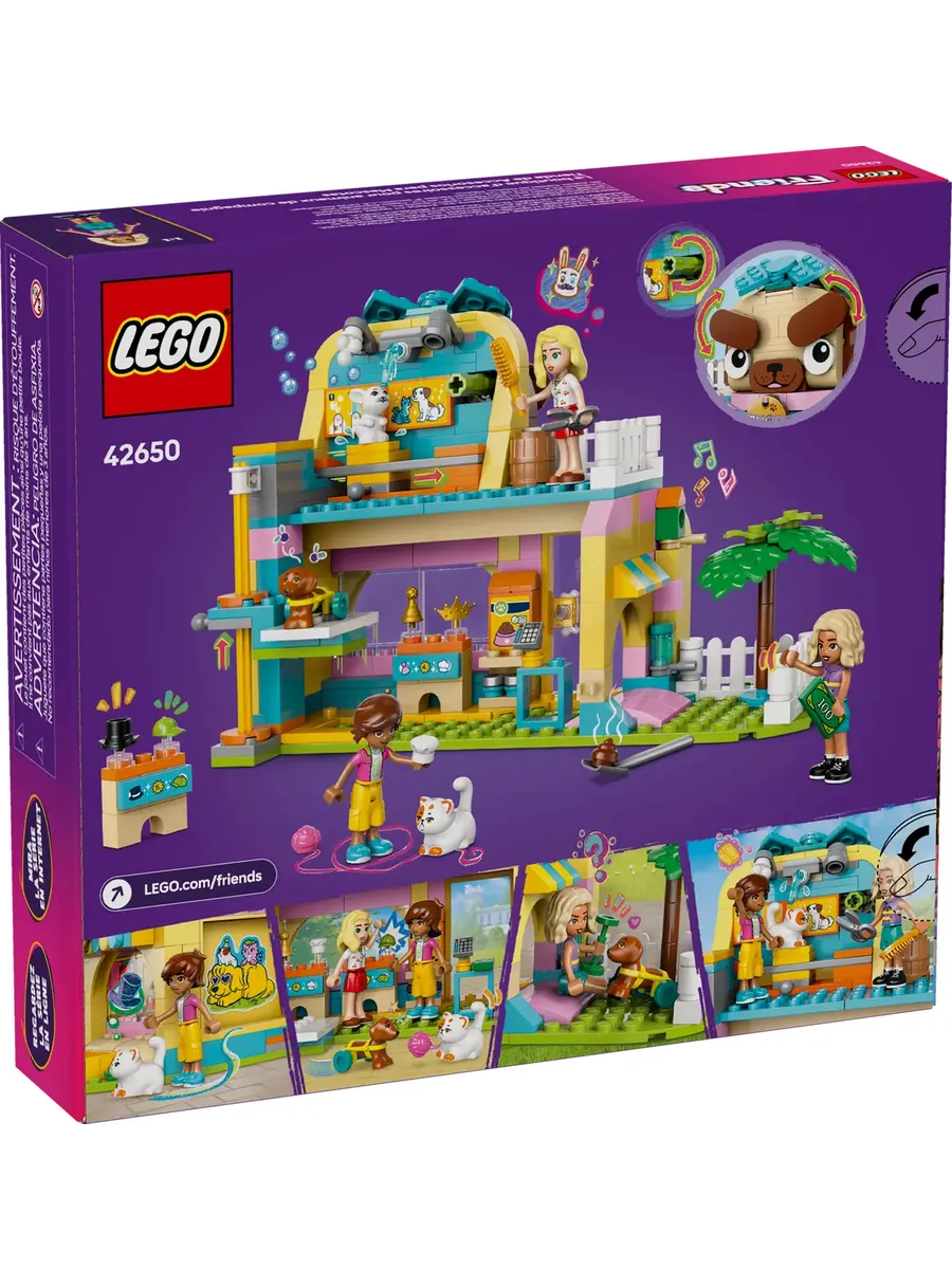 Это забавный подарок на день рождения или просто приятное угощение для детей, которые любят играть в уход за животными! Девочки, мальчики и все любители домашних животных в возрасте от 6 лет могут часами развлекаться в магазине аксессуаров для питомцев LEGO Friends (42650). В набор входят 3 мини-куклы, а также фигурки кошки, собаки и кролика для творческих игр.