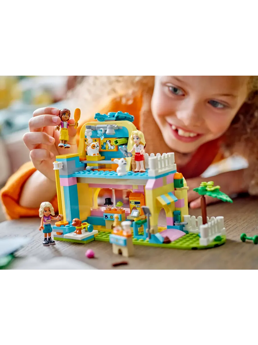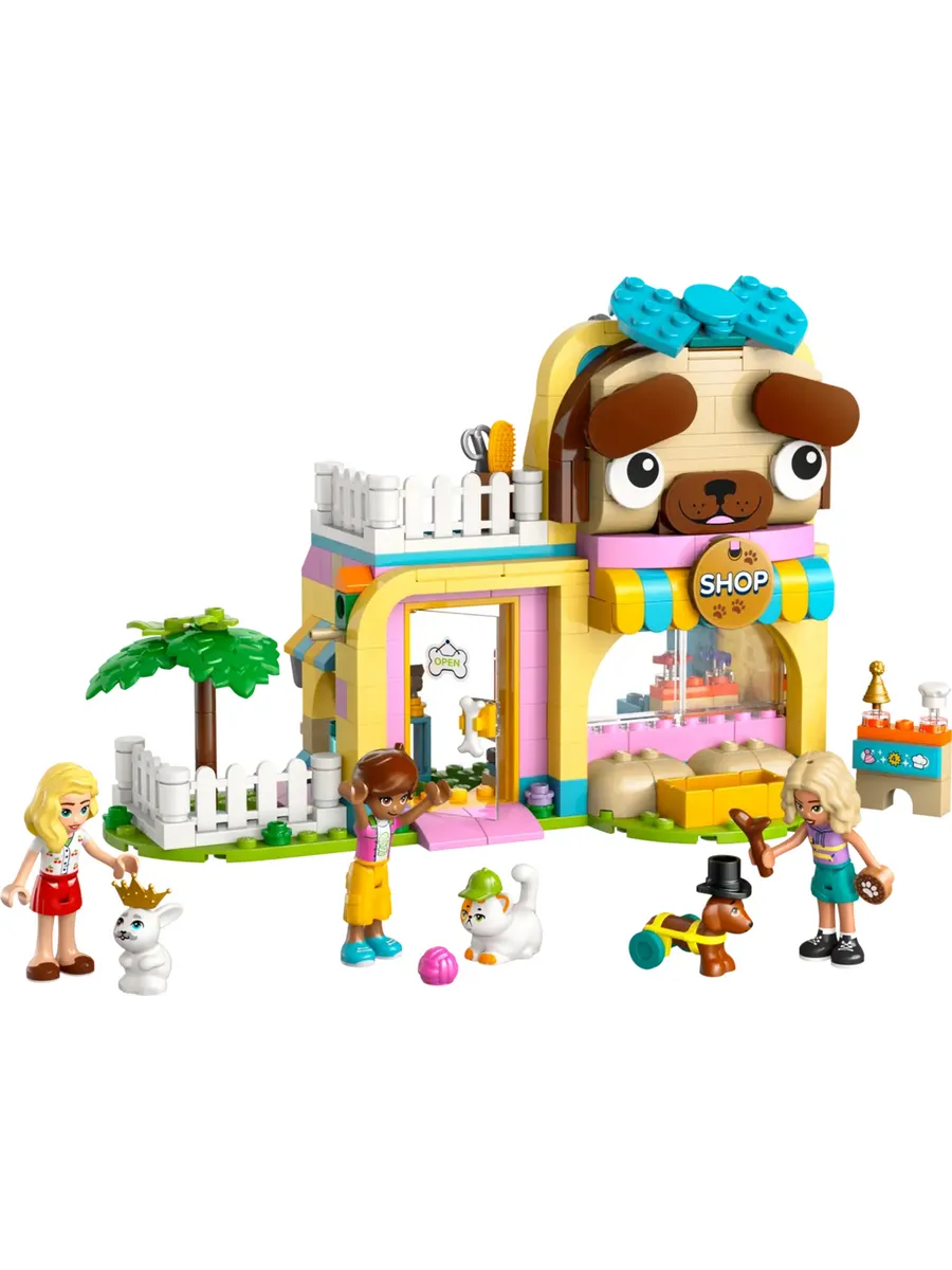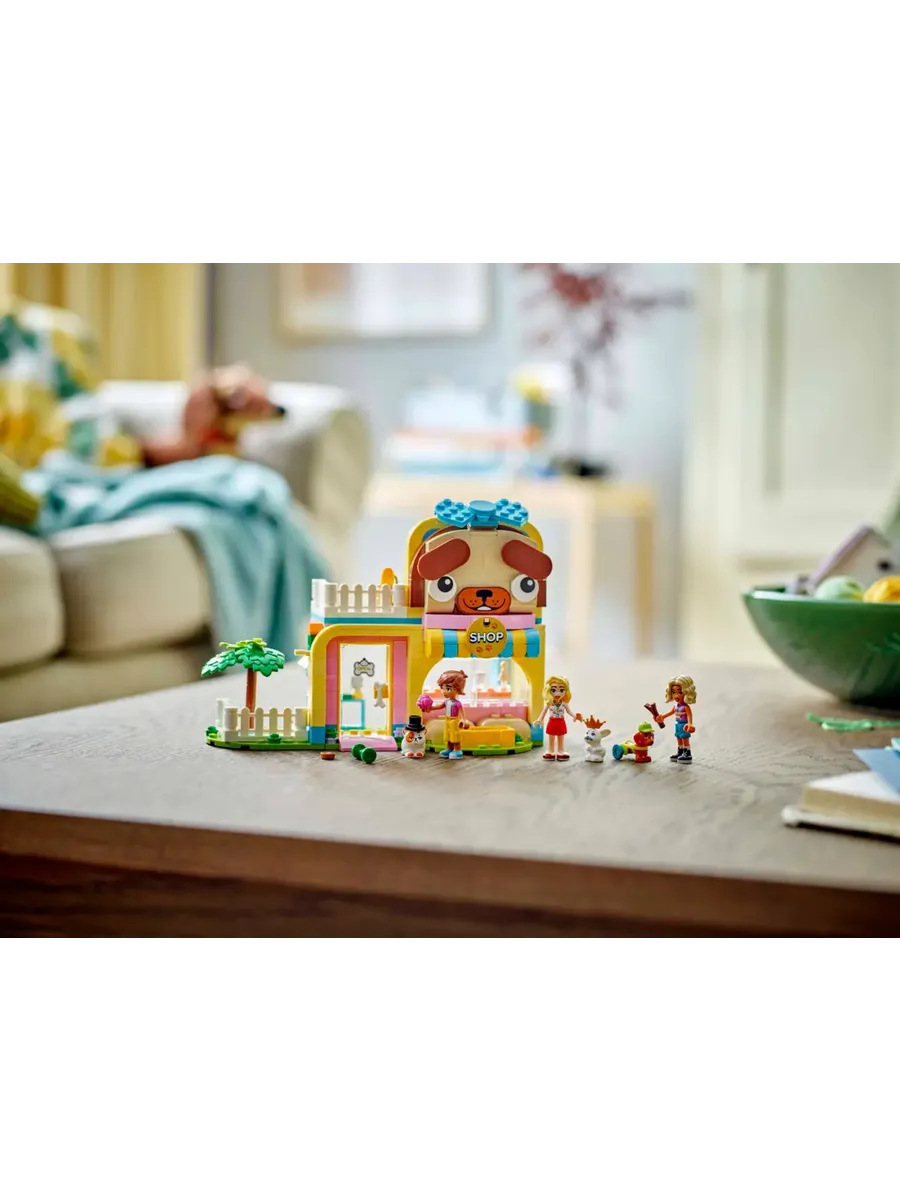 Игровой конструктор для детей — в этом наборе «Магазин аксессуаров для домашних животных» для девочек и мальчиков от 6 лет есть 3 мини-куклы, а также фигурки кошки, собаки и кролика и множество аксессуаров для творческих игр.