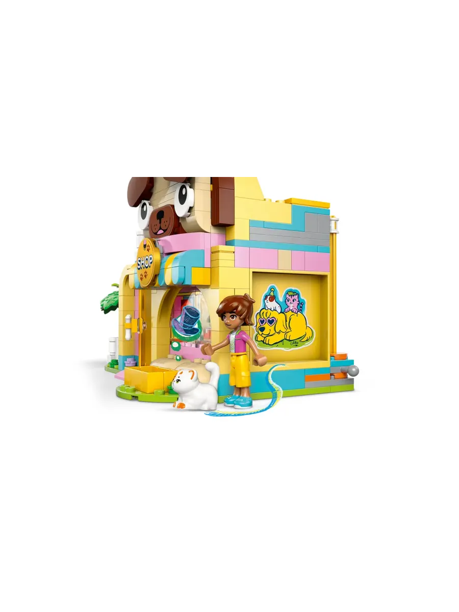 Магазин игрушек и аксессуаров для груминга домашних животных. В двухэтажном здании в форме собаки есть магазин аксессуаров для груминга и станция для груминга, где дети могут часами развлекаться, ухаживая за животными.