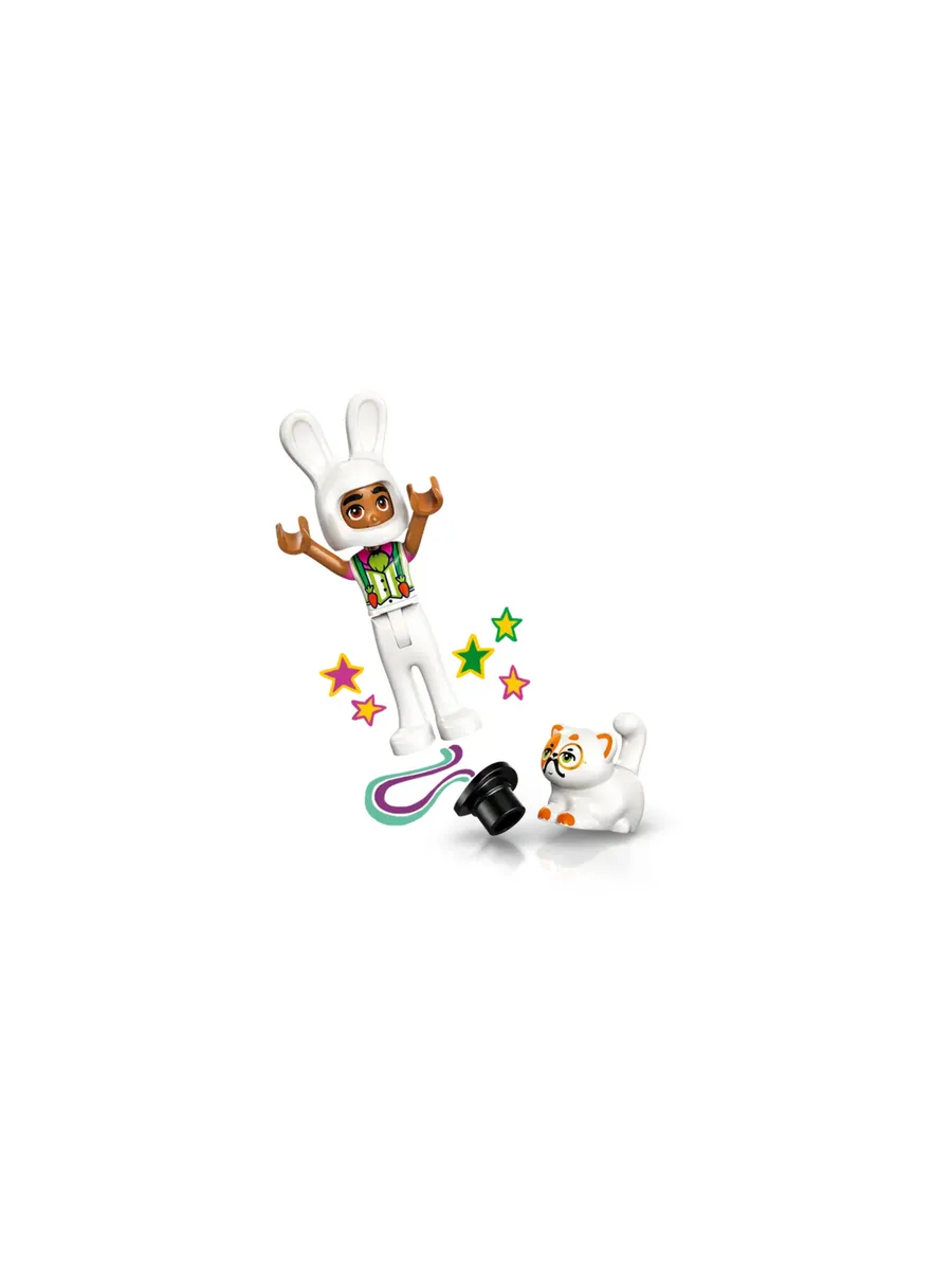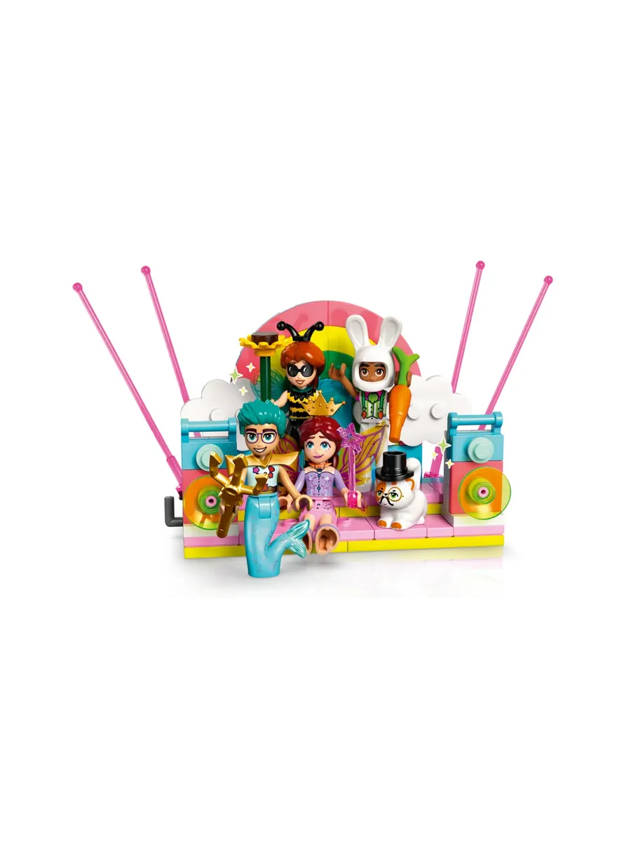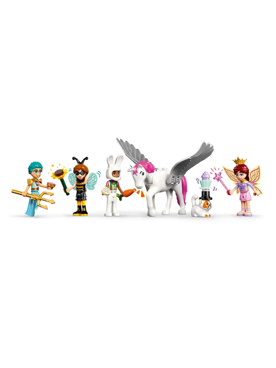 4 мини-куклы и 2 фигурки животных LEGO — начните вечеринку вместе с Отем, Олли, Лео, Пейсли и их питомцами, которые нарядились в шмеля, водяного, фокусника, кролика, фею и единорога.