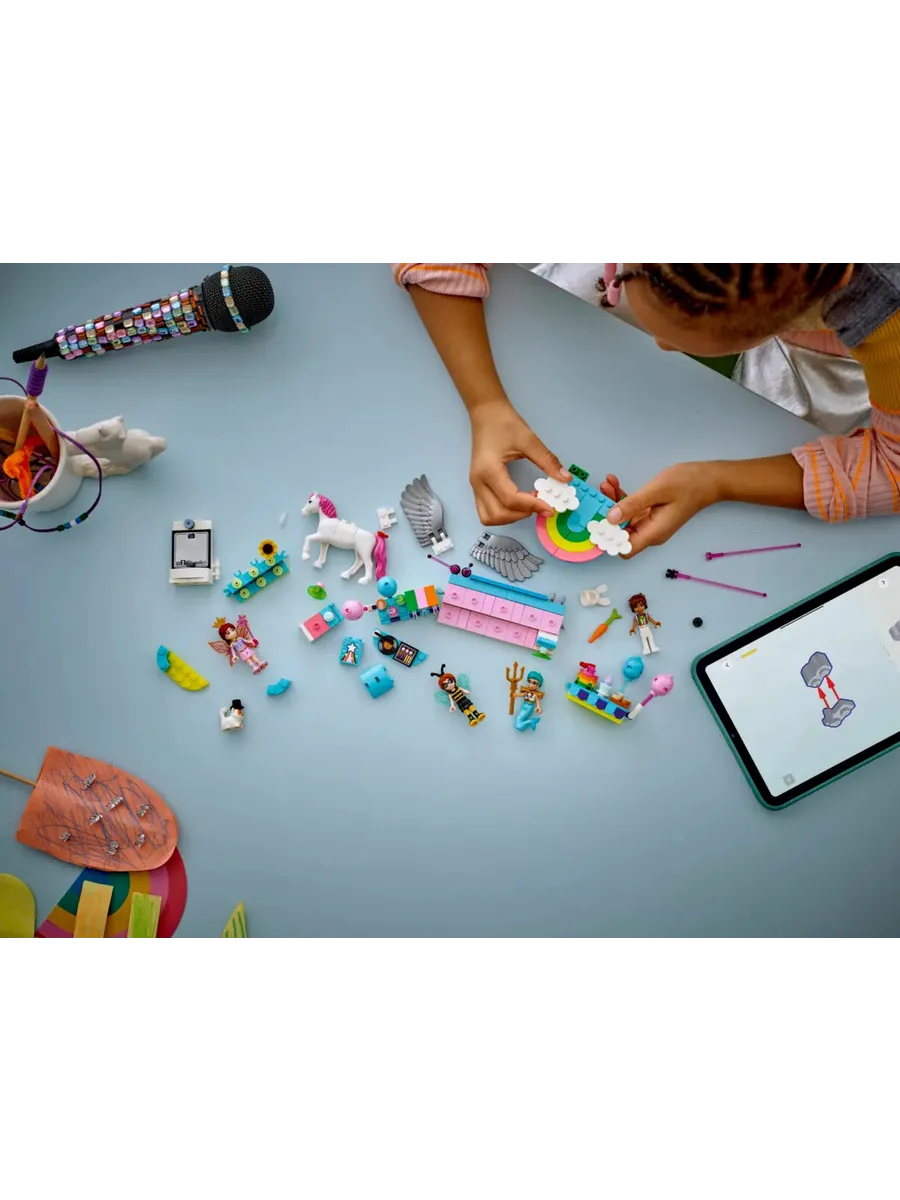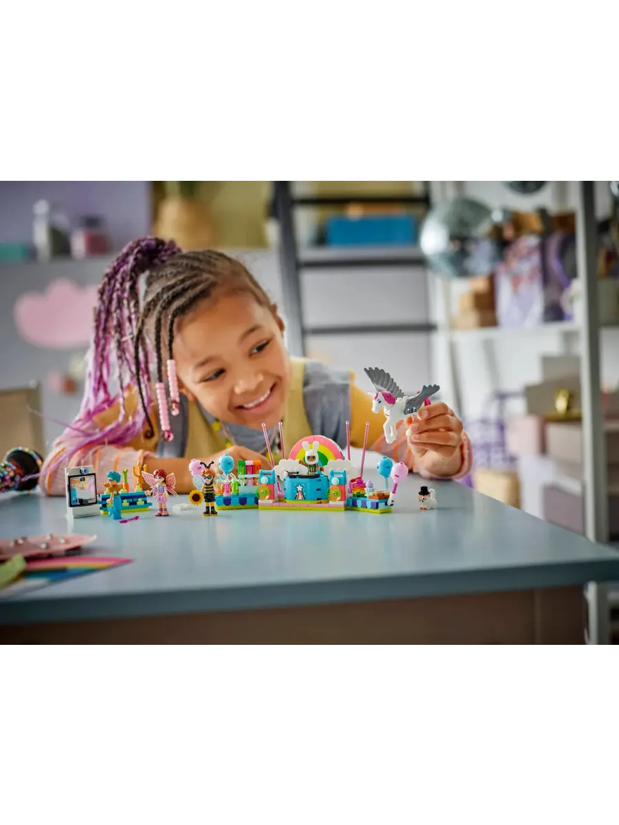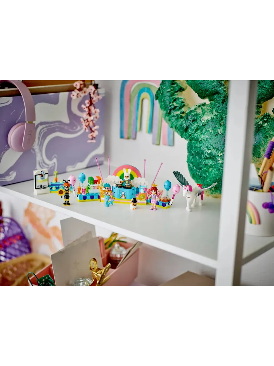 4 мини-куклы и 2 фигурки животных LEGO — начните вечеринку вместе с Отем, Олли, Лео, Пейсли и их питомцами, которые нарядились в шмеля, водяного, фокусника, кролика, фею и единорога.