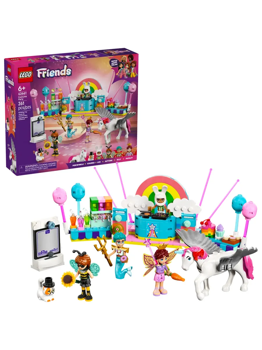 Перед вами детский конструктор, который вдохновит вас на создание историй. Набор LEGO Friends «Вечеринка в костюмах с единорогом и феей» (42661) для девочек и мальчиков от 6 лет включает в себя 4 мини-куклы LEGO Friends, фигурку кошки и фигурку лошади. В наборе также много милых аксессуаров для ролевых игр.
