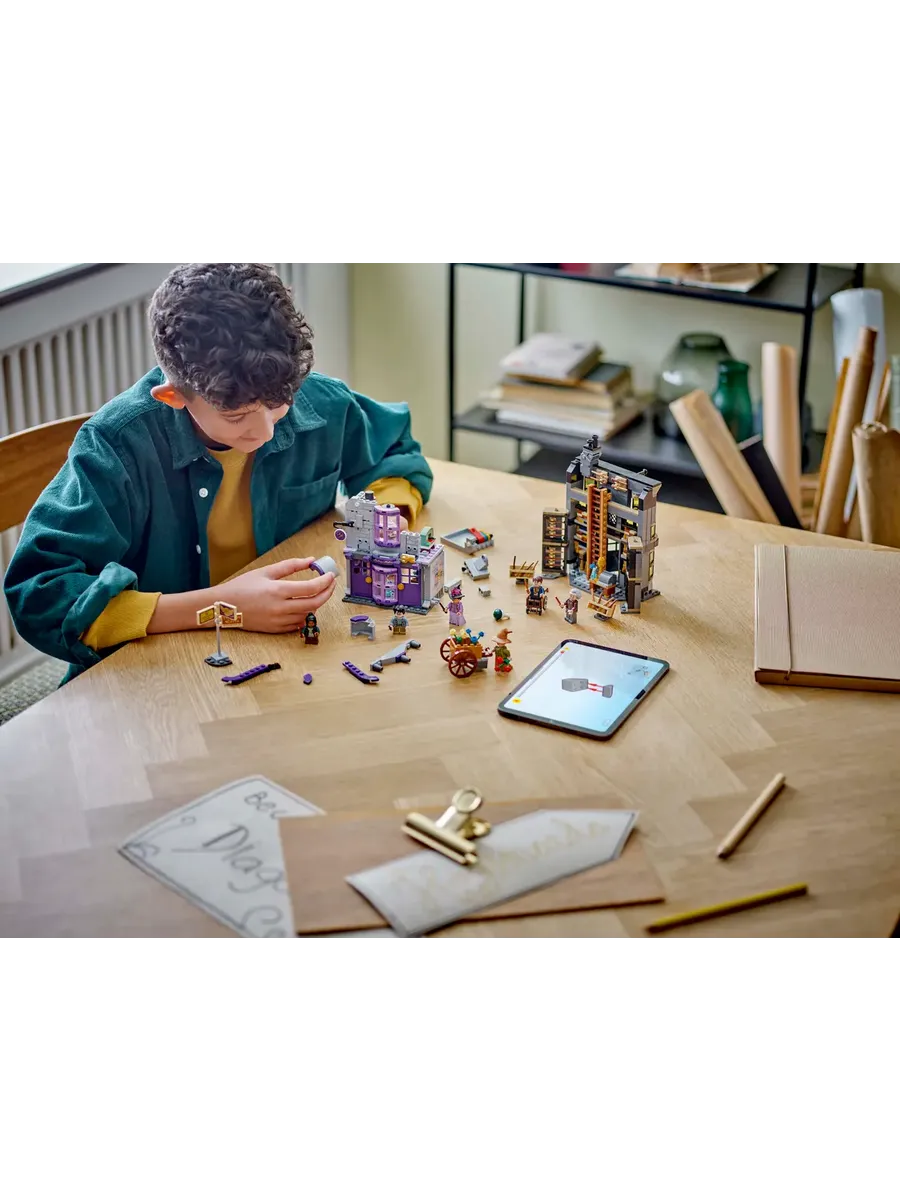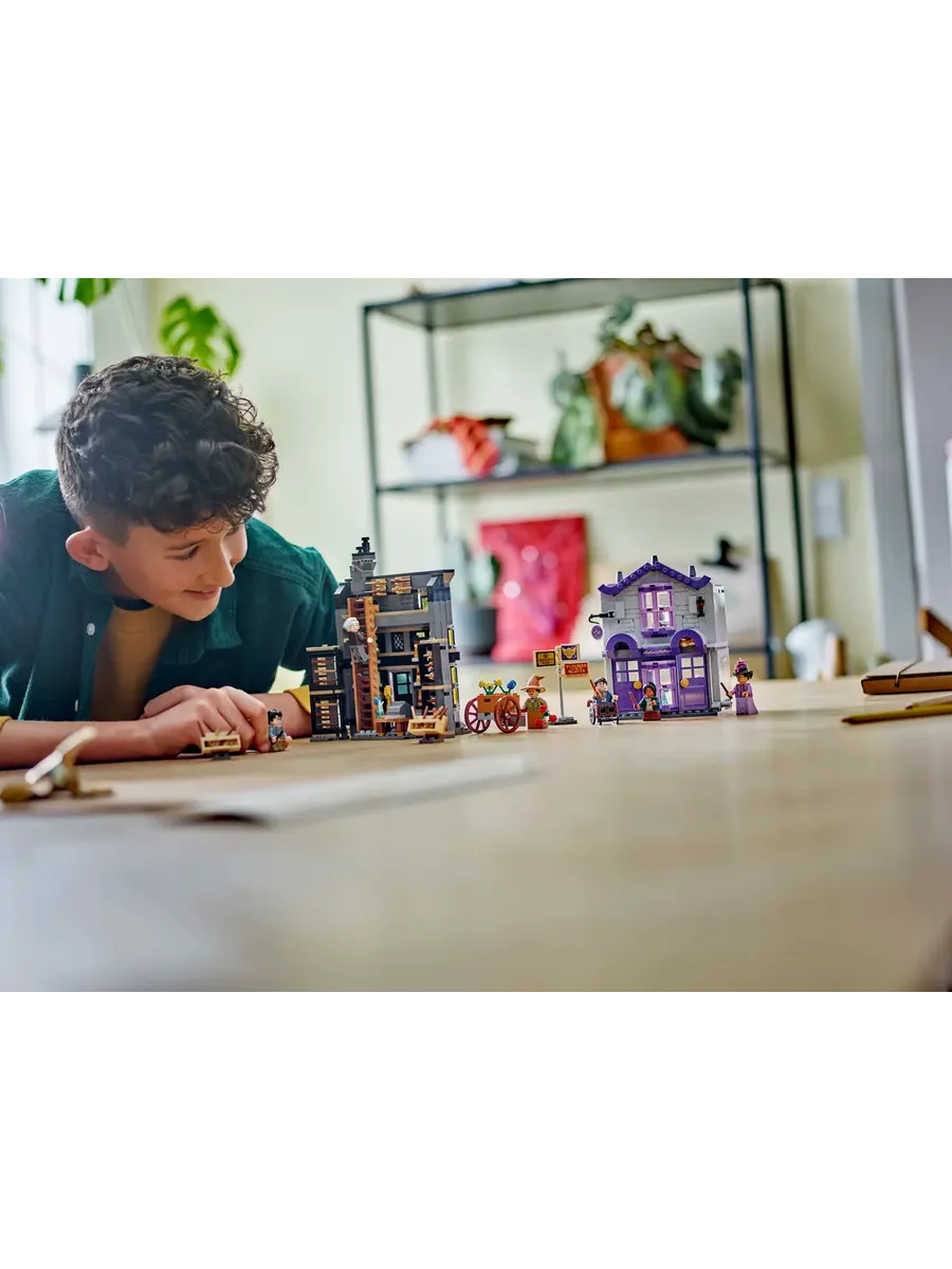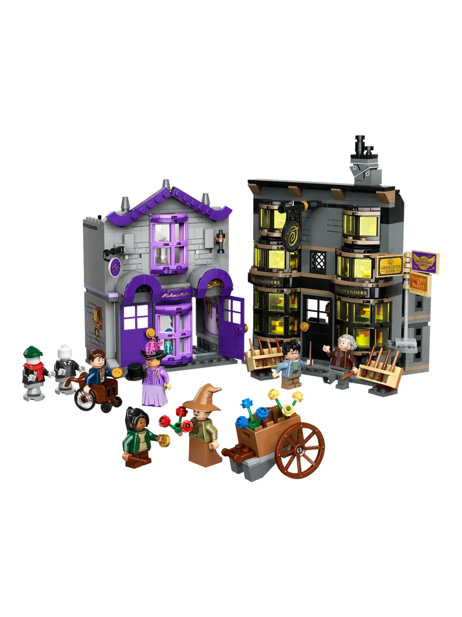 В коллекционный игровой набор также входят 6 минифигурок LEGO: Гарри Поттер, Гаррик Олливандер, мадам Малкин, Падма Патил, ученик-волшебник и ведьма с охапкой цветов — для творческих игр.