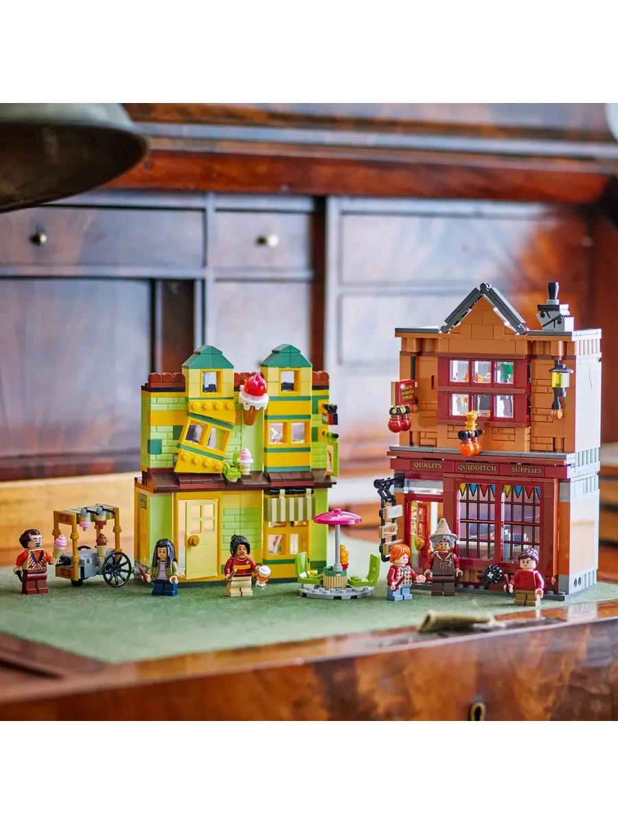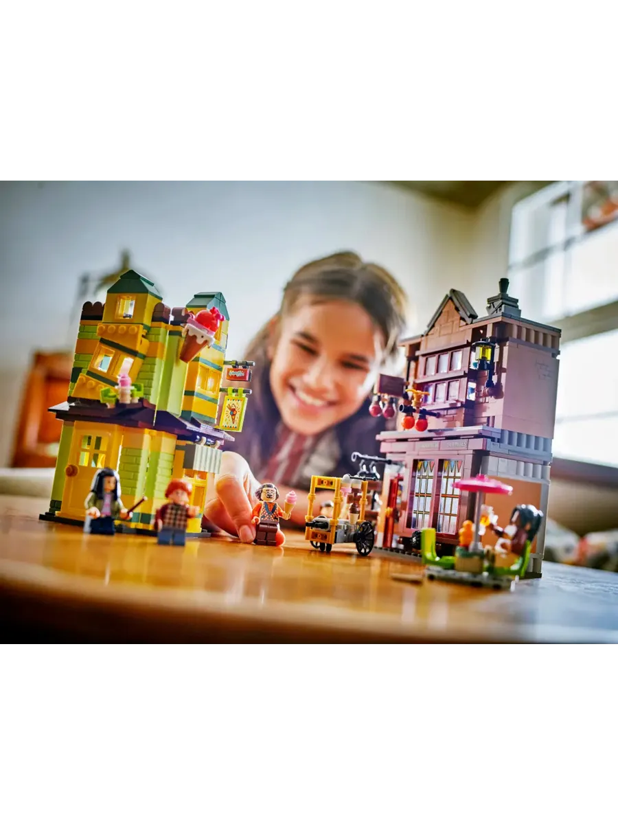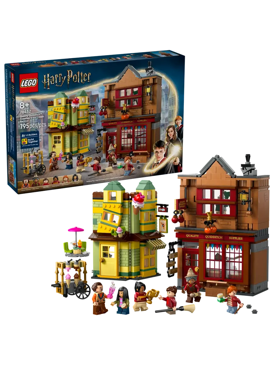 Отправляйтесь в магазин Quality Quidditch Supplies и кафе-мороженое Флориана Фортескью, чтобы пережить волшебные приключения в мире фэнтези с этим игровым набором LEGO «Гарри Поттер. Косой переулок» для детей (76452). Это волшебная игрушка в подарок на день рождения или праздник для мальчиков, девочек и всех поклонников Гарри Поттера в возрасте от 8 лет. В набор входят детализированные модели из кирпичиков LEGO двух культовых магазинов Косого переулка, а также 6 минифигурок. В этом наборе для фантастических приключений представлены Флориан Фортескью, Кэти Белл, Алисия Спиннет, Рон Уизли, Чо Чанг и продавец.