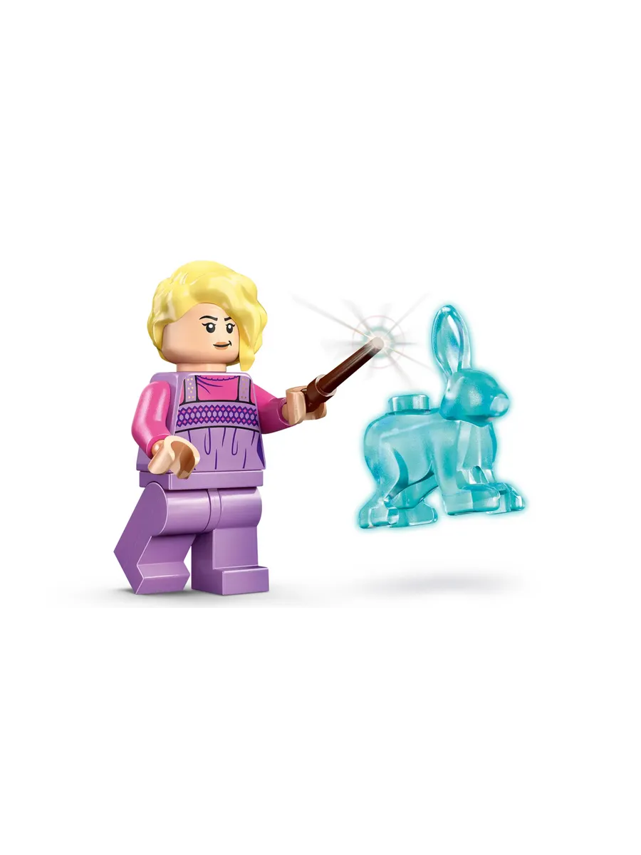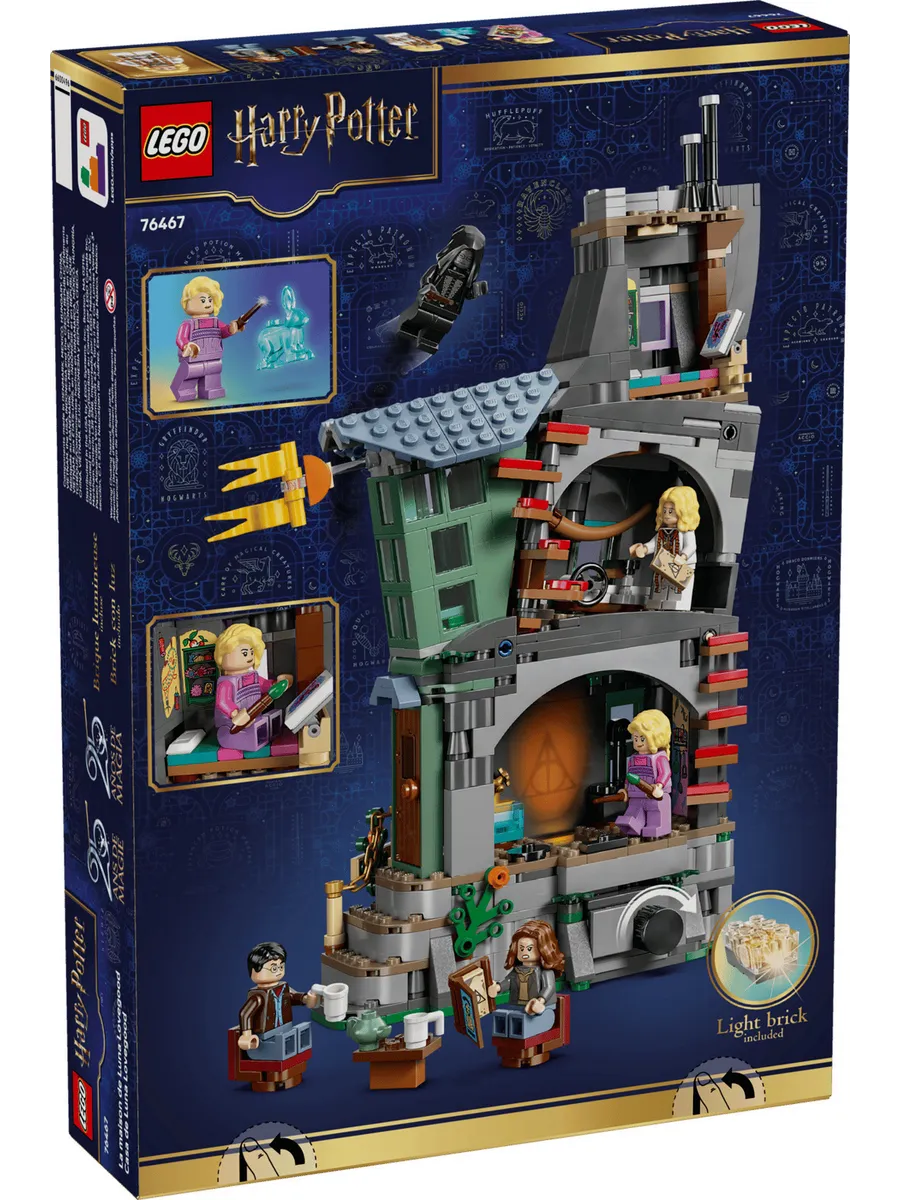 Выдвиньте мебель из кухни для более удобной игры и активируйте светящийся кубик LEGO, чтобы проецировать изображения из «Сказки о трёх братьях» на стену. Осмотрите комнату Луны и типографию Ксенофилиуса Лавгуда. И воссоздайте побег героев с помощью рога Эрумпента. Кролик-патронус Луны из этого набора является частью целой коллекции отдельно продаваемых фигурок Патронуса, посвященной 25-летию наборов LEGO Harry Potter.