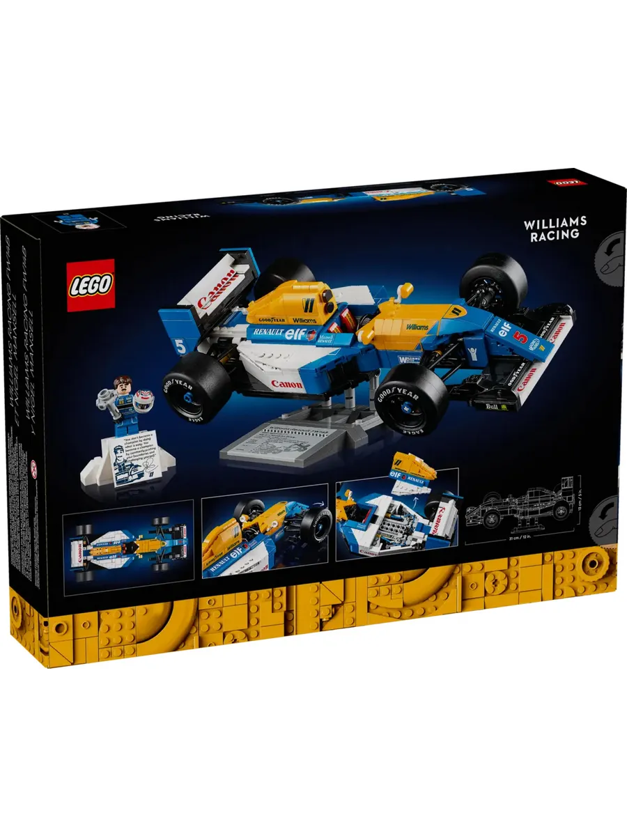 Модель Williams FW14B от LEGO Icons оснащена рабочим рулевым управлением, широкими задними сликовыми шинами с надписью Goodyear и детально проработанным двигателем, а также подставкой с информацией о транспортном средстве и его характеристиках. Минифигурка Найджела Мэнселла поставляется со шлемом и подставкой в виде подиума с фотографией и цитатой легендарного гонщика.