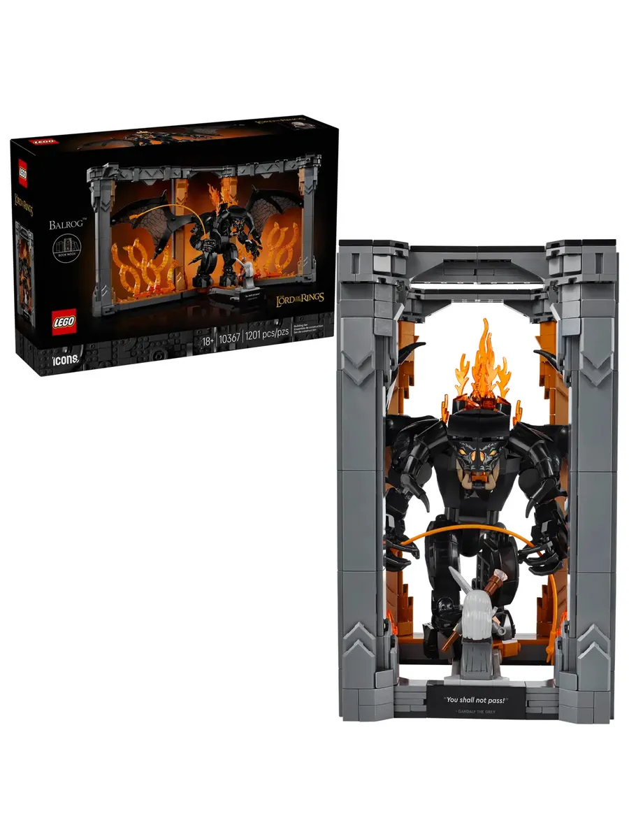 Набор для создания книжного уголка с памятными вещами из фильмов — откройте окно в Средиземье с помощью набора LEGO Icons «Властелин колец: Балрог» для взрослых