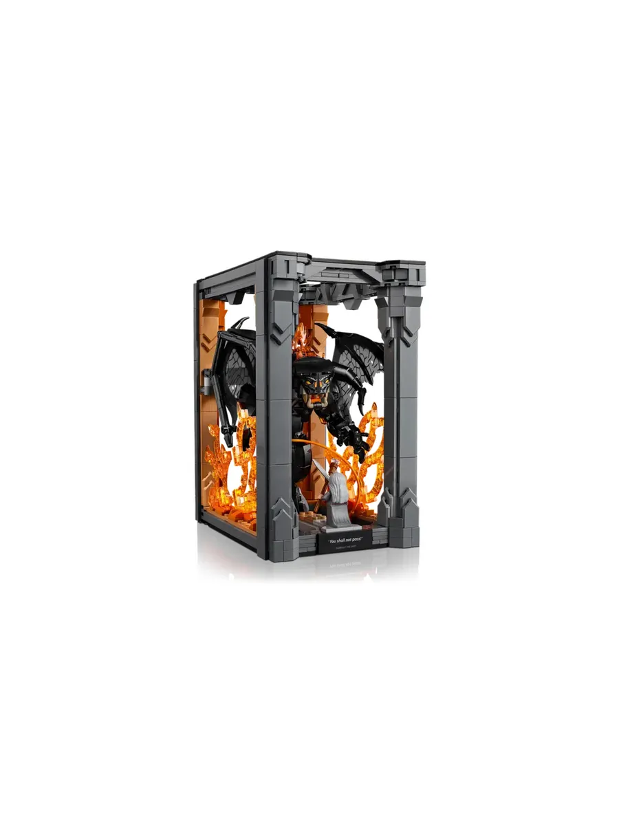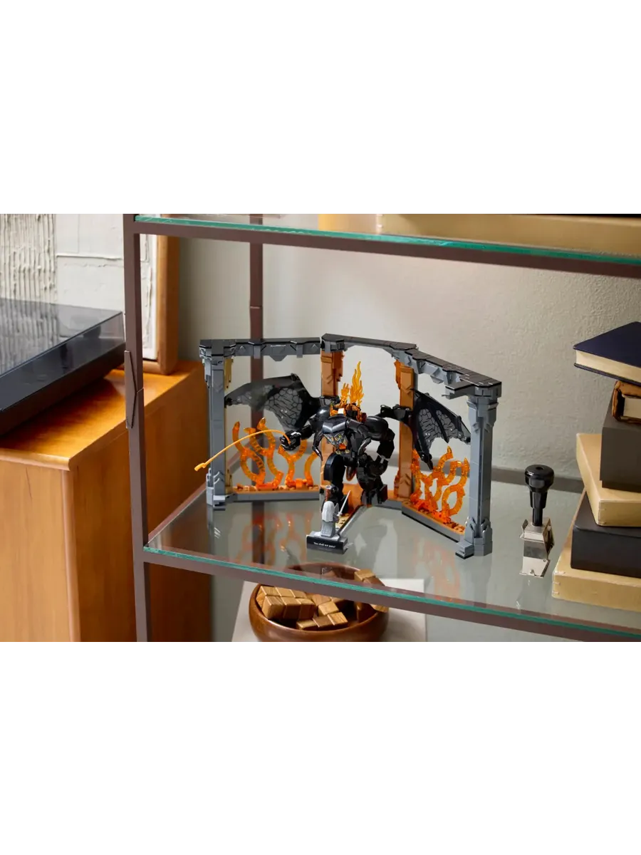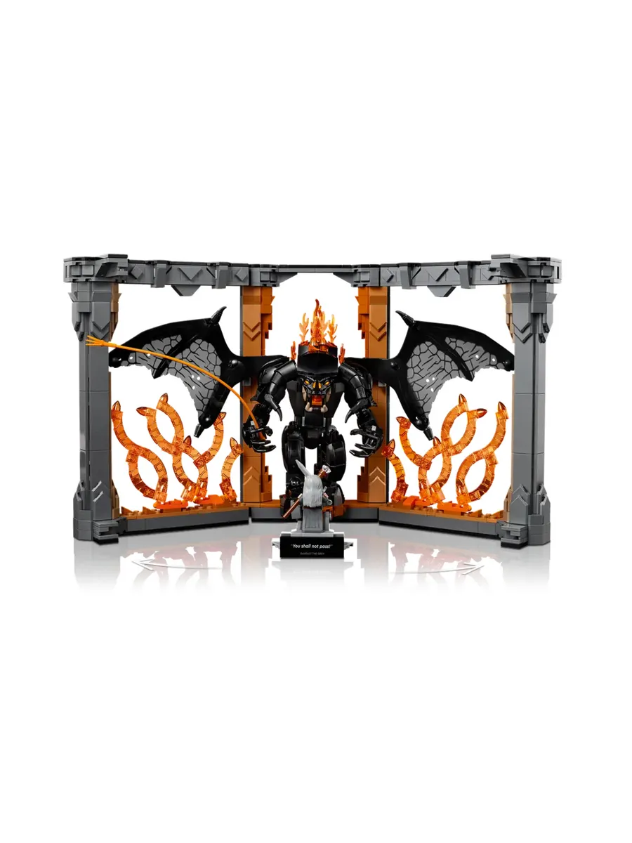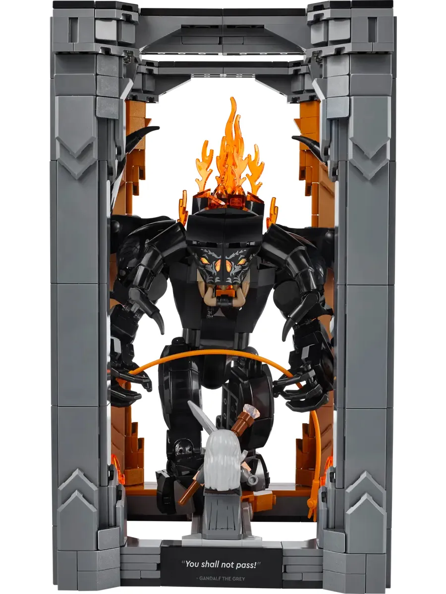 На табличке с надписью «Тебе не пройти» изображена фигура Гэндальфа Серого в бесстрашной позе и Балрог с расправленными могучими крыльями на фоне пылающей стены огня. Оба персонажа снимаются, у минифигурки Гэндальфа есть посох и меч, а у фигурки Балрога — огненный хлыст. Конечности и крылья можно поворачивать для динамичной демонстрации.