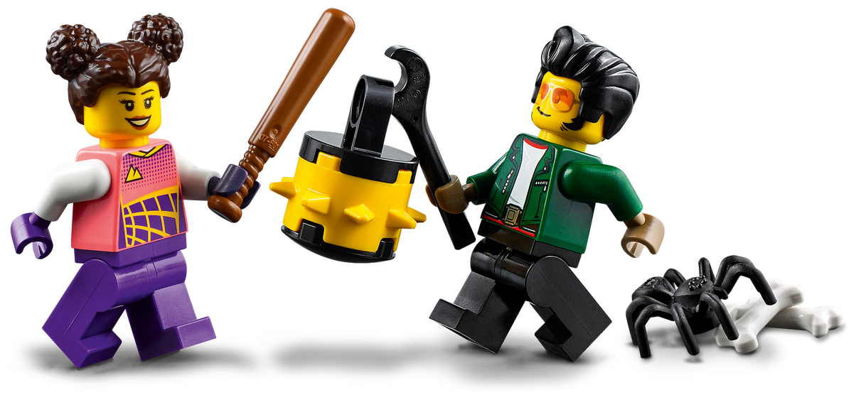 Что в коробке? Всё, что нужно детям, чтобы собрать модульный парк каскадёров с двумя трамплинами, препятствиями, огнём и клеткой с пауком, а также трюковый мотоцикл с маховиком и минифигурка Треда Октана из телесериала «ЛЕГО Сити».