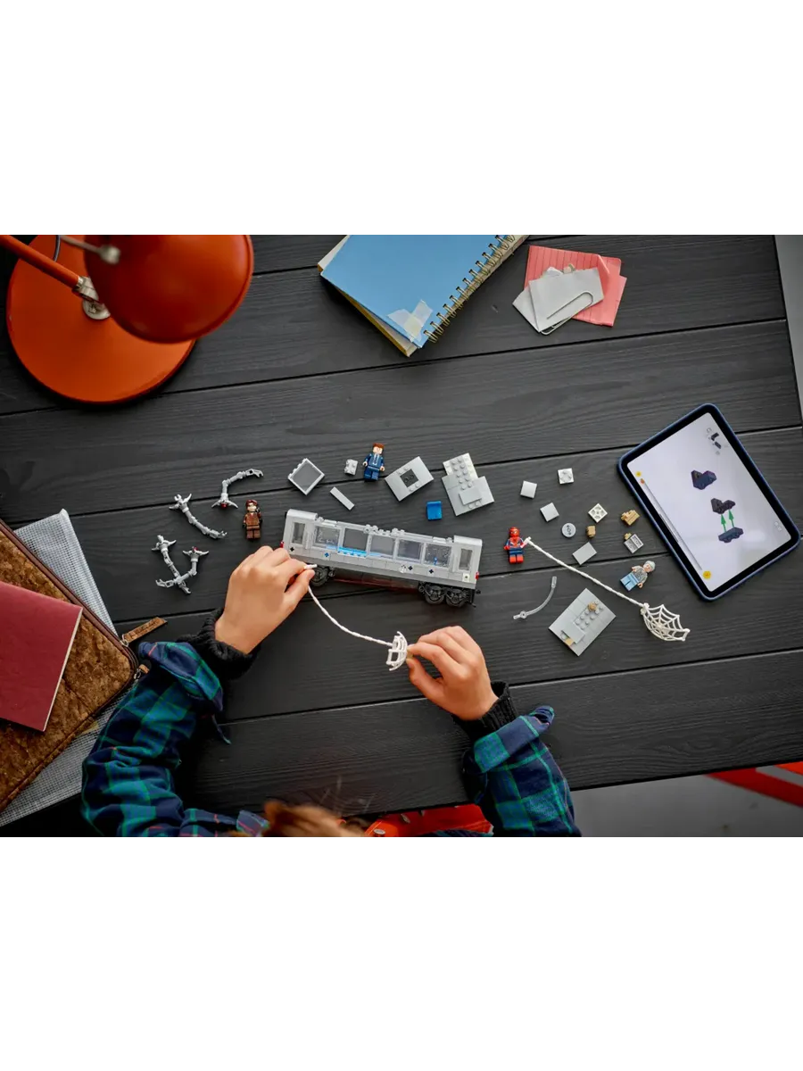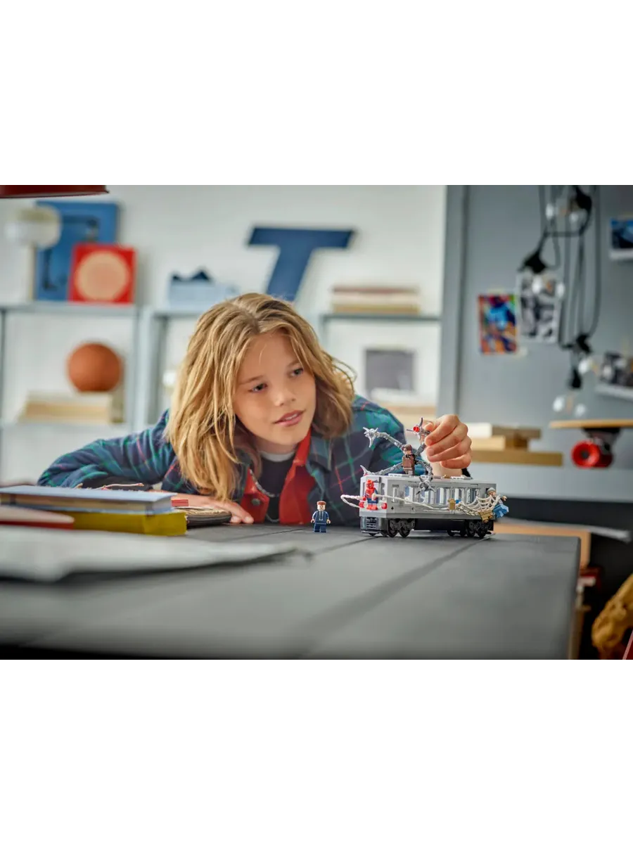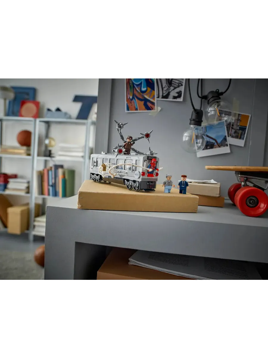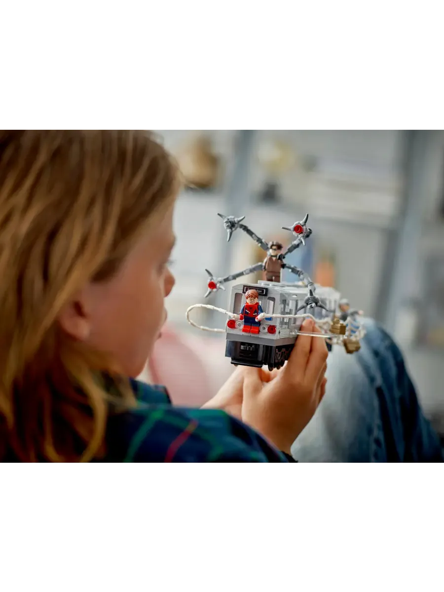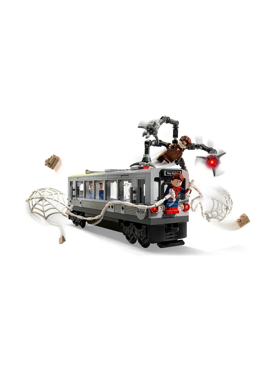 Этот набор для сборки поезда метро «Супергерой» основан на культовой сцене из фильма «Человек-паук 2» от Marvel Studios. В набор входят 4 минифигурки: Дж. Джона Джеймсон, тётя Мэй, Человек-паук и доктор Оук. У минифигурки Человека-паука есть сменные головы — в маске и без маски — и большая паутина, которую можно прикрепить к поезду. У минифигурки доктора Оука есть 4 подвижных щупальца, 2 из которых оснащены элементами «лазерного луча», а 2 — зажимами, которые крепятся к поезду. Съёмная крыша открывает доступ в салон поезда, где достаточно места для пассажиров-минифигурок.