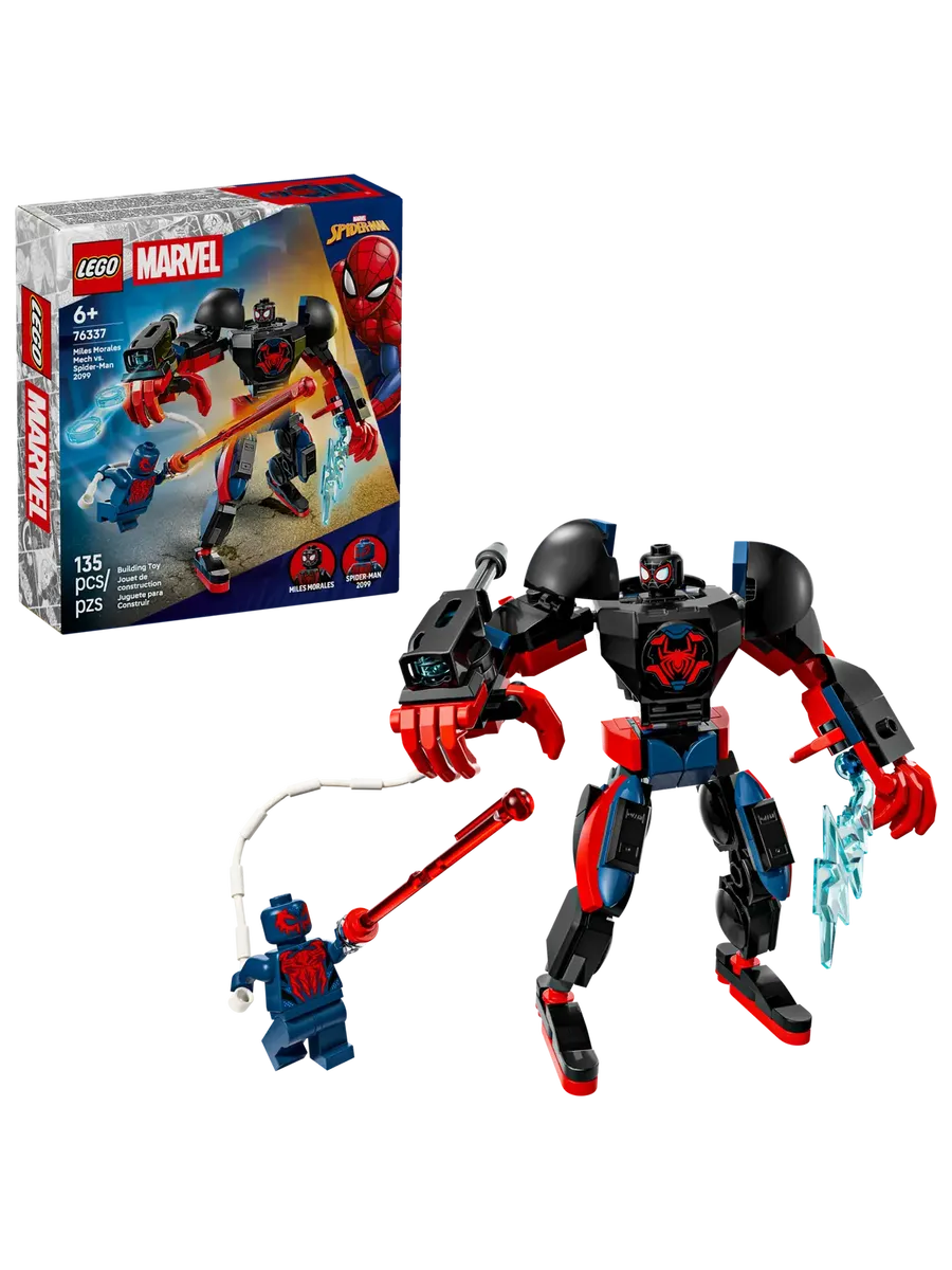 Воплотите в жизнь масштабные сражения из фильмов Marvel с помощью набора «Майлз Моралес против Человека-паука 2099» (76337) — развивающей игрушки для мальчиков и девочек от 6 лет и старше. Эта развивающая игрушка для детей вдохновит на бесконечные ролевые игры с большим, полностью подвижным роботом, а также мини-фигурками Человека-паука и Майлза Моралеса. Этот набор LEGO ǀ Marvel переносит действие фильма «Человек-паук: Через вселенные» от Marvel Studios в руки детей с помощью робота, который можно легко трансформировать и который предназначен для динамичной игры. На руках робота есть съёмный трёхзарядный шутер, паутина и паутина-бритва, которые обеспечивают непрерывное боевое действие.