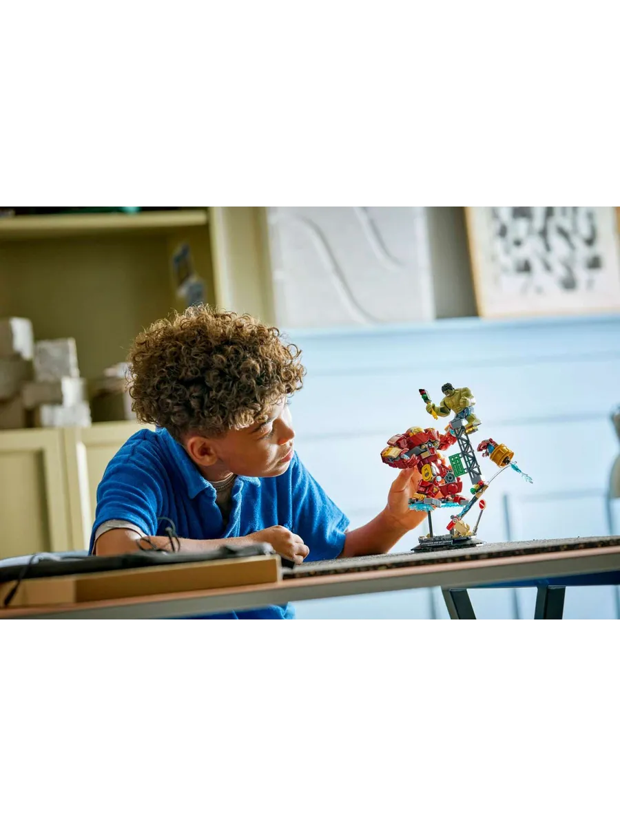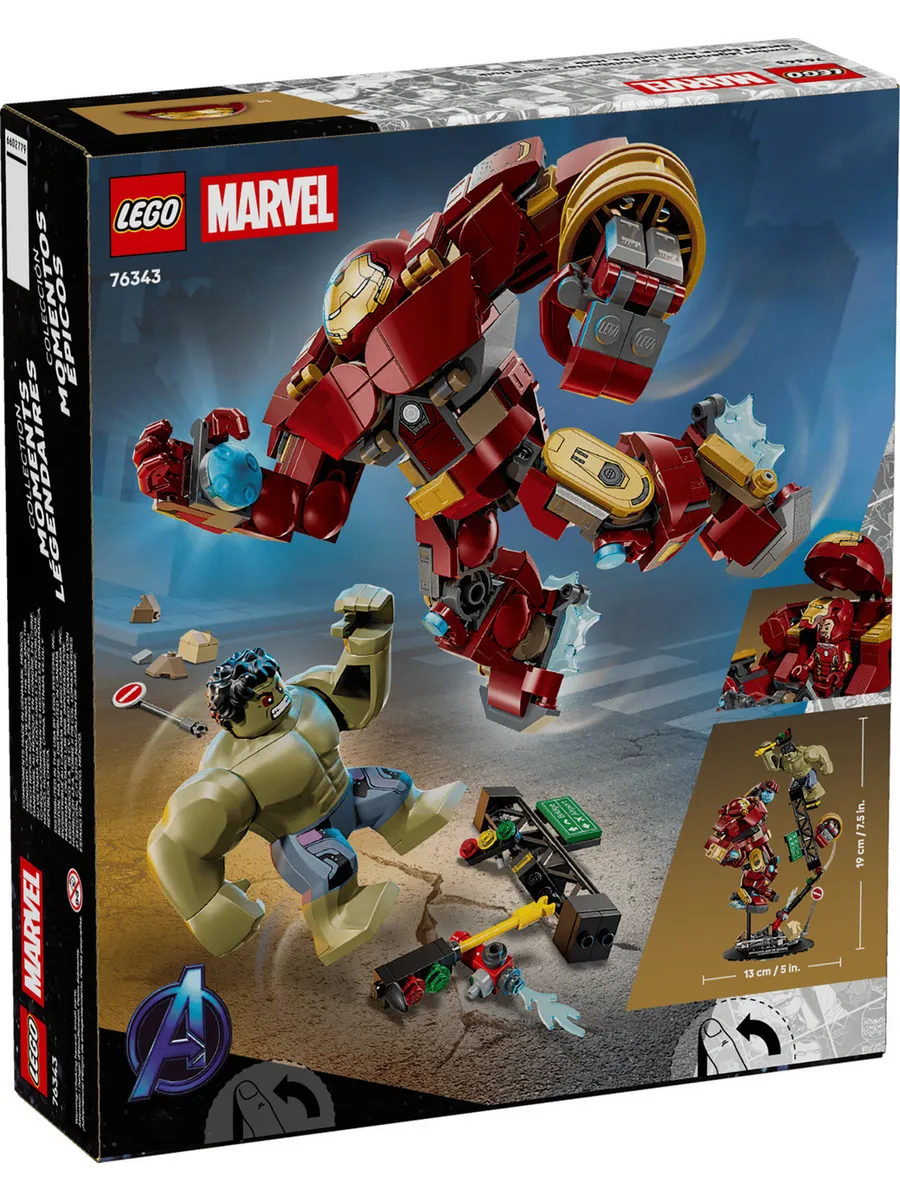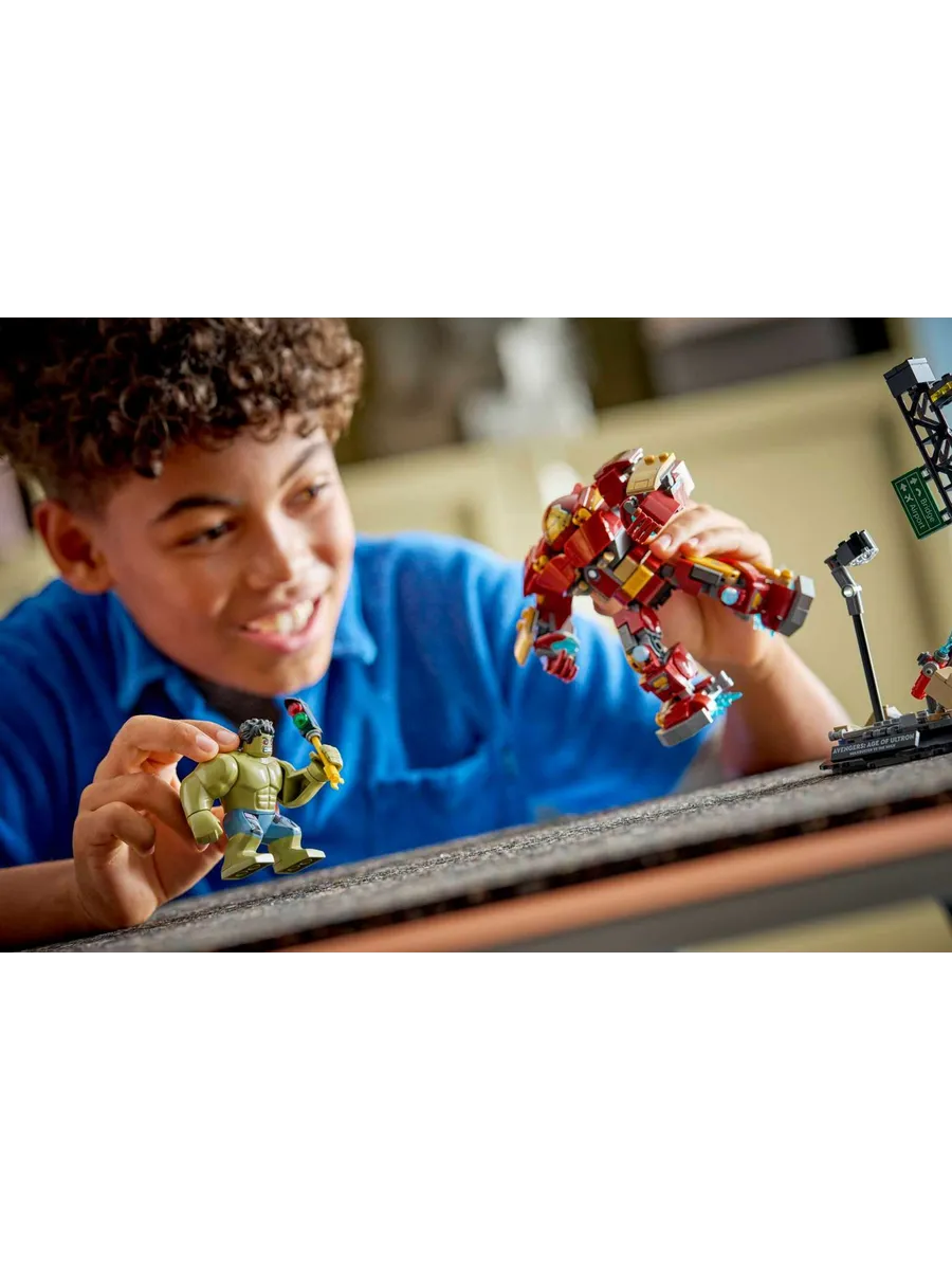 LEGO Marvel Битва гигантов: Халкбастер против Халка (76343) — это конструктор для мальчиков и девочек от 9 лет и старше, позволяющий воссоздавать сцены из фильма Marvel Studios «Мстители: Эра Альтрона». Минифигурки Железного Человека и Халка, а также культовый робот Халкбастер, приглашают детей к бесчисленным ролевым играм.