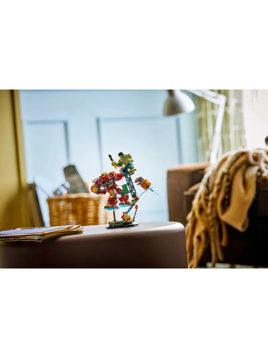 Этот увлекательный конструктор также станет прекрасным украшением интерьера. В своем роботе Халкбастере Железный Человек сражается с Халком — среди обломков, рушащихся стальных конструкций и светофора, который Халк может использовать в качестве снаряда. Благодаря шарнирам в конечностях, Халкбастер полностью подвижен. Модель эффектно смотрится на прочной подставке с табличкой.
