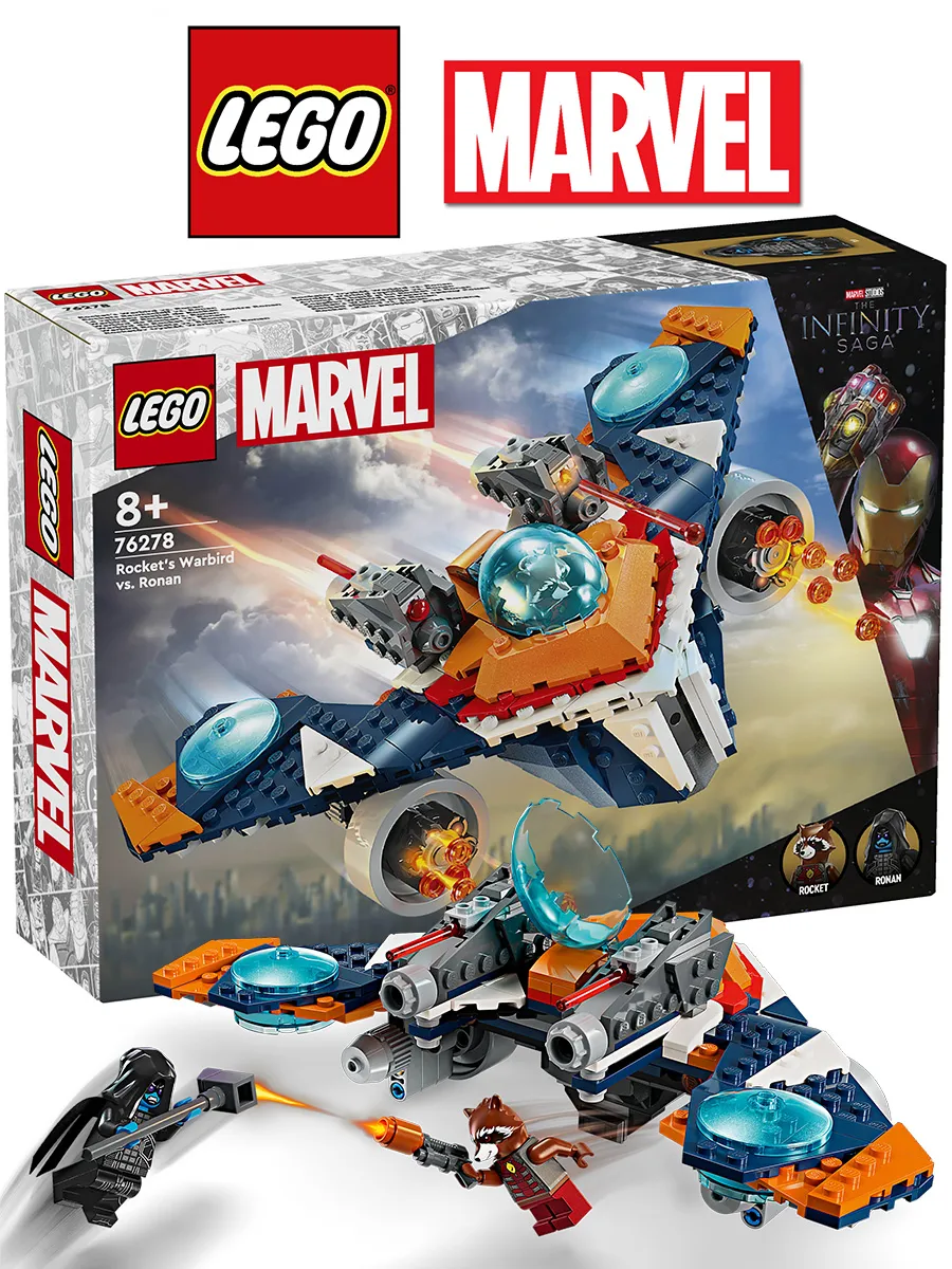 Конструкторская игрушка-космический корабль для детей — мальчики и девочки от 8 лет могут воссоздать события из «Стражей Галактики» от Marvel Studios и многое другое с помощью LEGO Marvel Rocket’s Warbird против Ронана