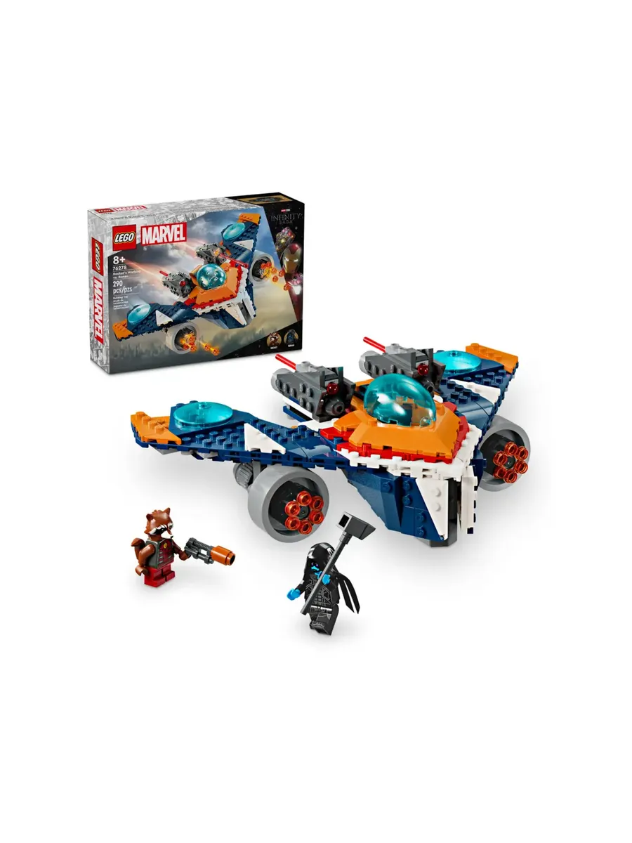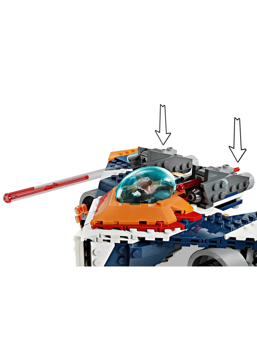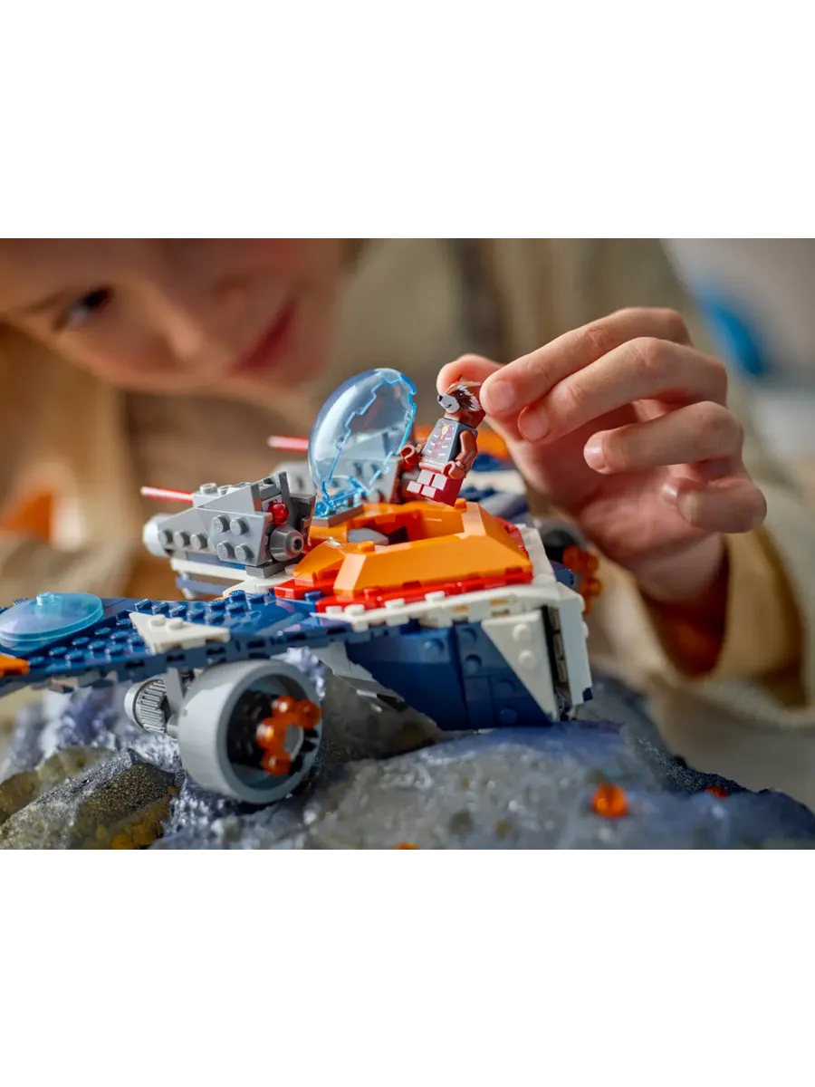 Этот подарок от Marvel Studios «Стражи Галактики» идеально подойдёт любителям кино и поклонникам потрясающих самолётов и сборных игрушек про супергероев. Космический корабль оснащён открывающейся кабиной, в которой помещается минифигурка, двумя пружинными пушками сверху и мега-пушкой с 6-лучевым прицелом под каждым крылом. В наборе 2 минифигурки: Ракета с бластером и Ронан Обвинитель в плаще и с мощным молотом Косми-Род. Для дополнительного цифрового веселья конструкторы могут увеличивать масштаб, поворачивать модели в 3D и отслеживать свой прогресс с помощью увлекательного и интуитивно понятного приложения LEGO Builder.