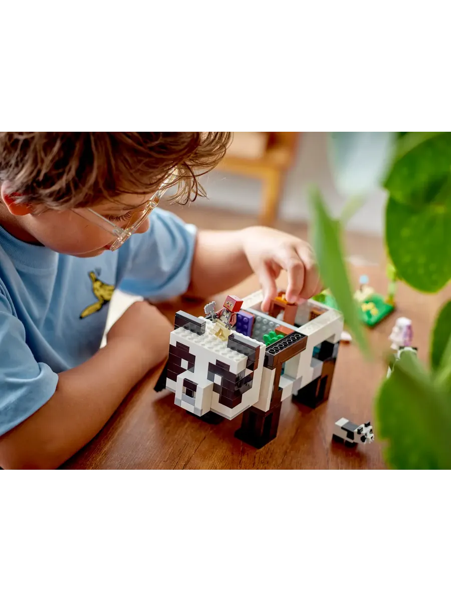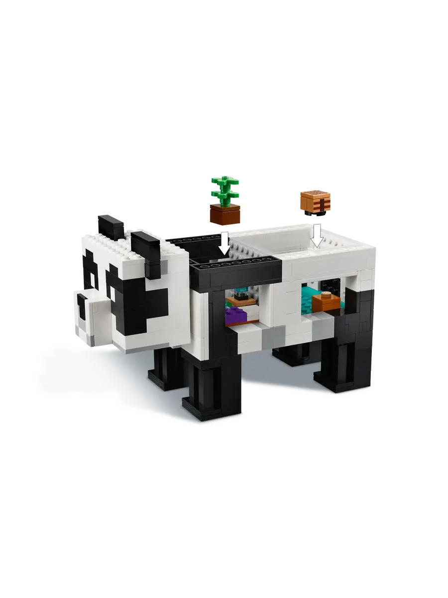 Игровой набор «Домик панды» — LEGO Minecraft «Домик панды» (21245) — это трёхэтажный домик в форме панды с комнатами и подвижными конечностями, которые позволяют ему двигаться как панда.