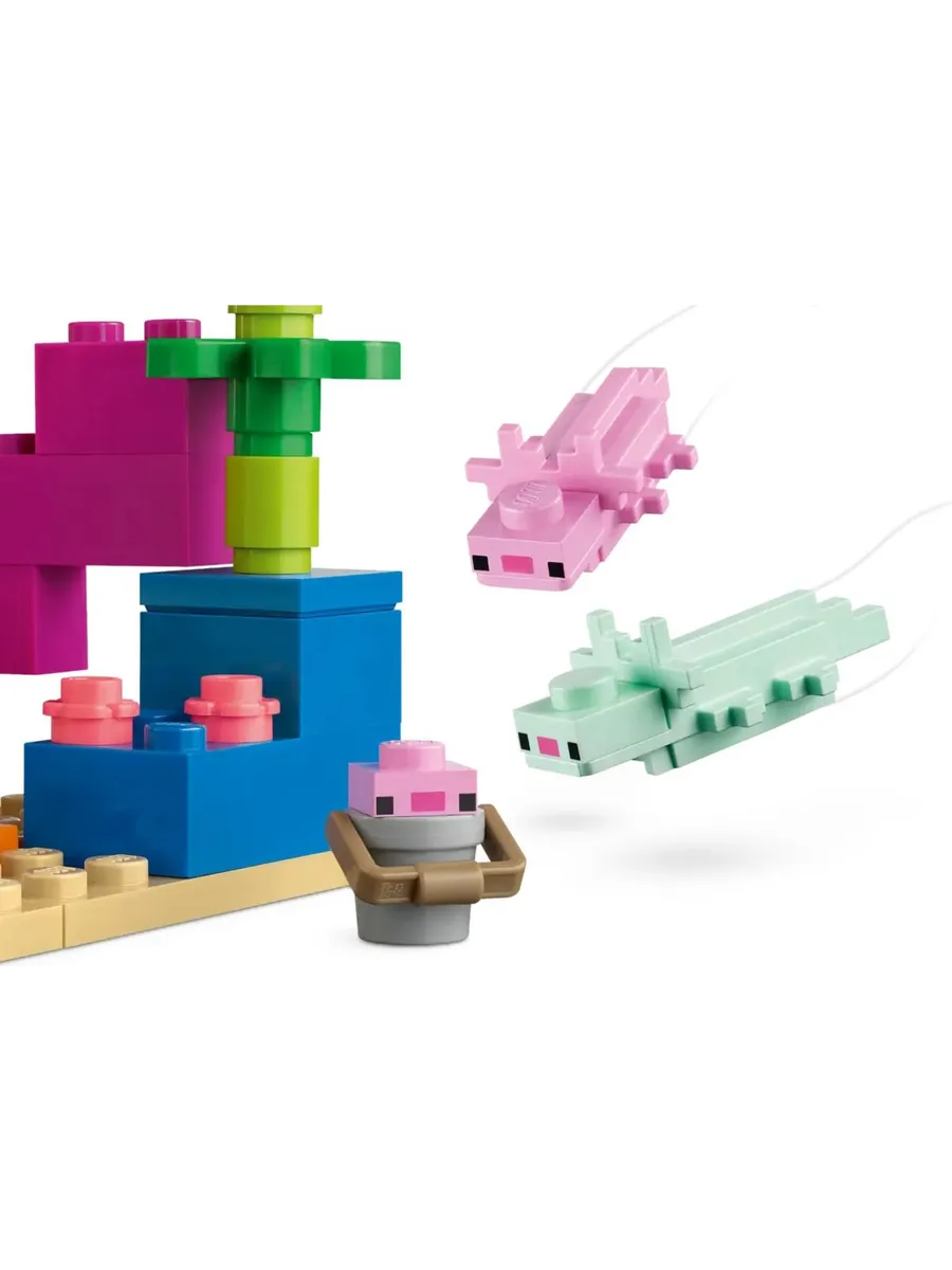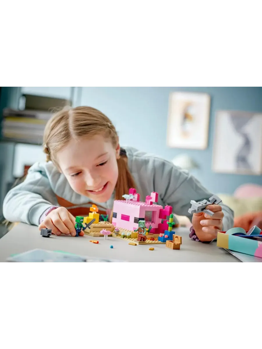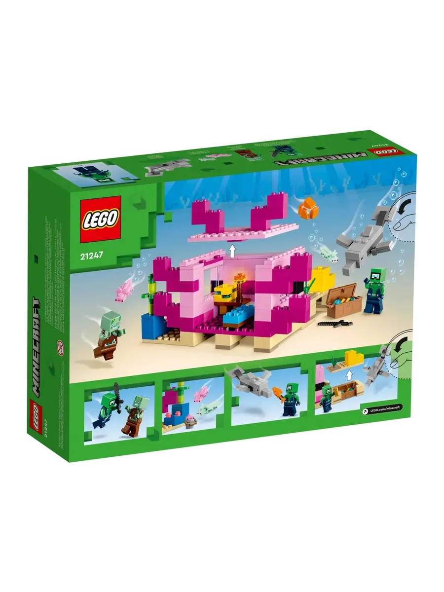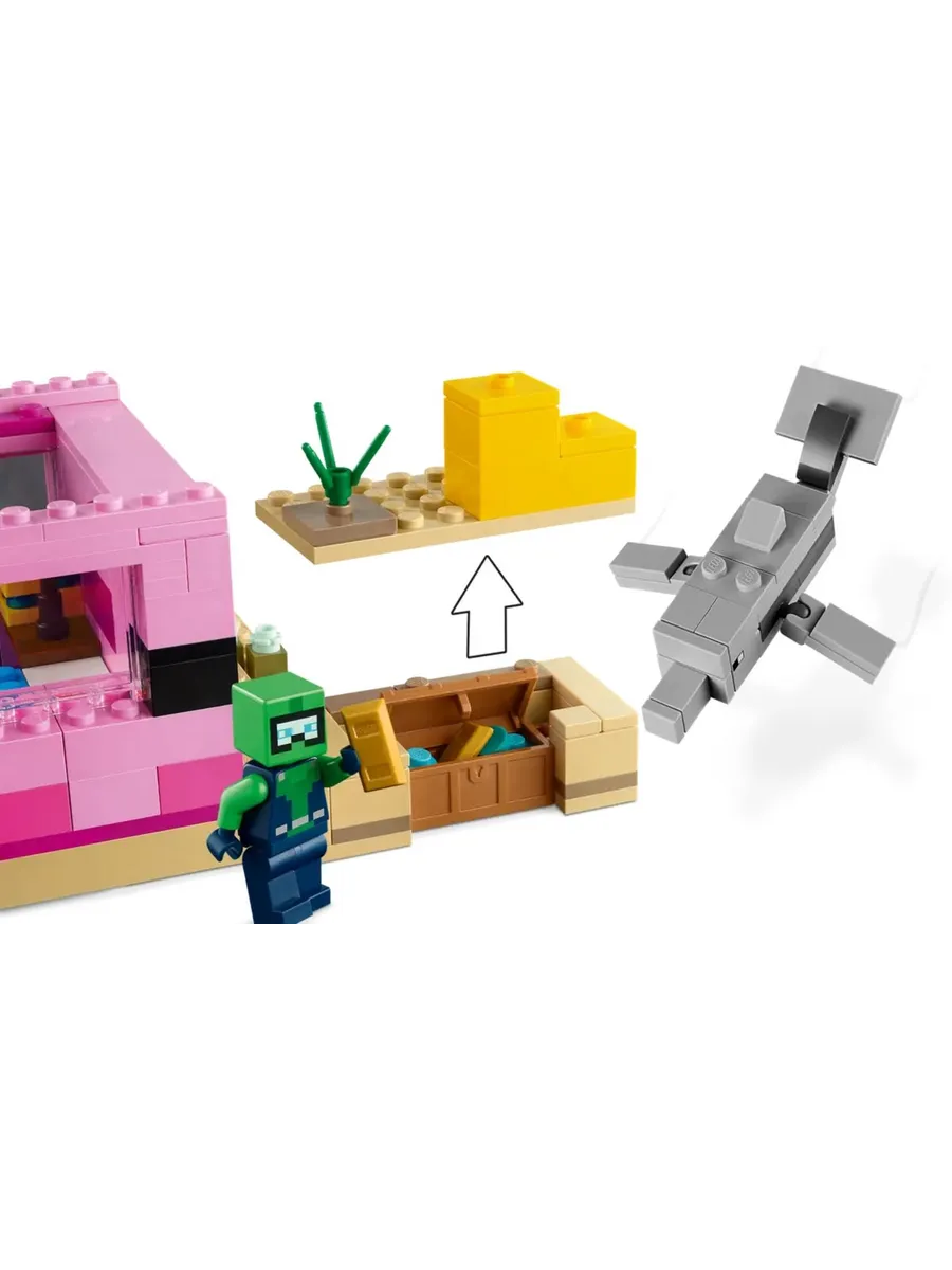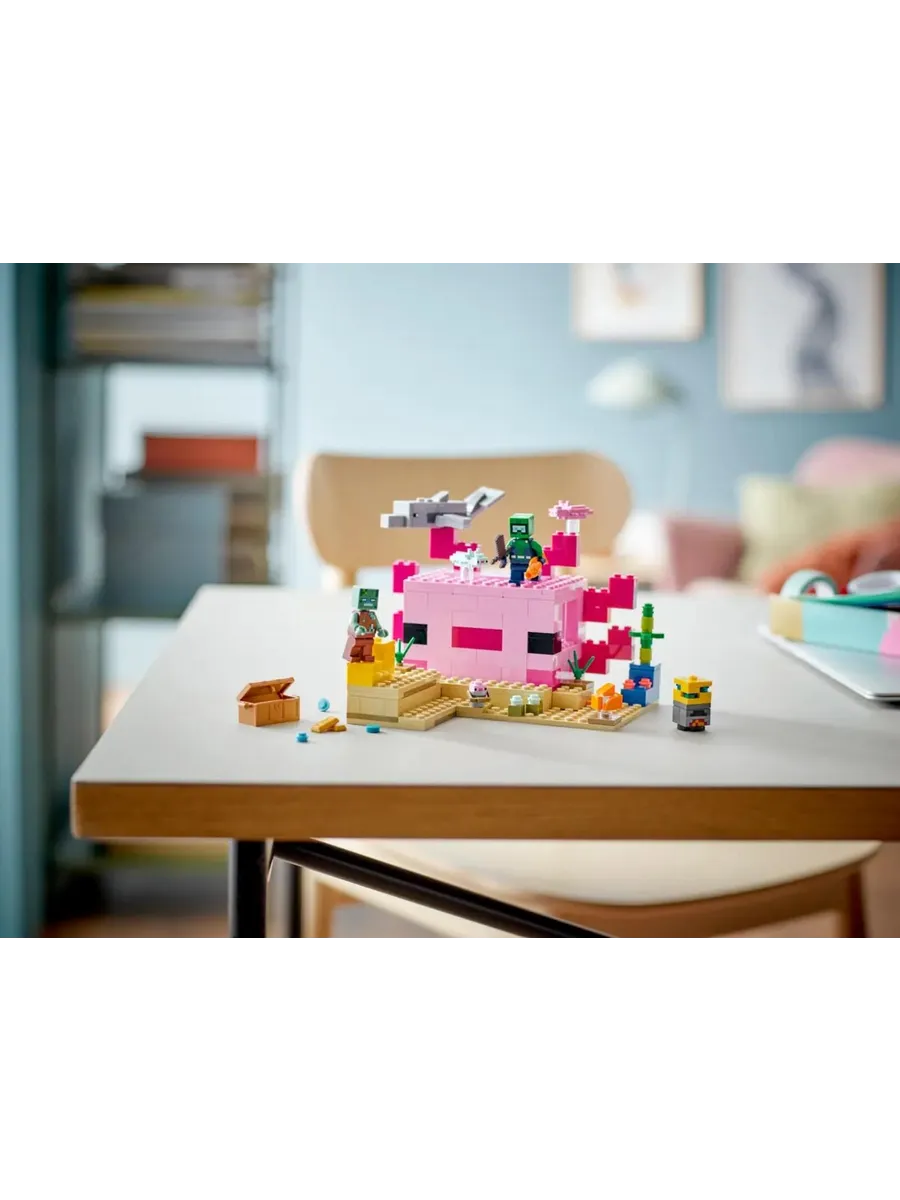 Дети используют свои навыки Minecraft, чтобы построить гигантский ярко раскрашенный дом в форме популярного в игре аксолотля. Затем они присоединяются к подводному исследователю в бесконечных приключениях с дельфином-искателем сокровищ, иглобрюхом, двумя взрослыми аксолотлями, аксолотлем в ведре и спрятанным сундуком с сокровищами. Съёмная крыша строения обеспечивает лёгкий доступ к меблированному интерьеру с плавильной печью и губкой, которая впитывает воду. Но когда на них нападает подводный зомби, игроки должны взять в руки меч и присоединиться к аксолотлям, чтобы защитить свою глубоководную базу.