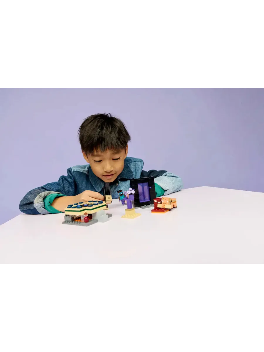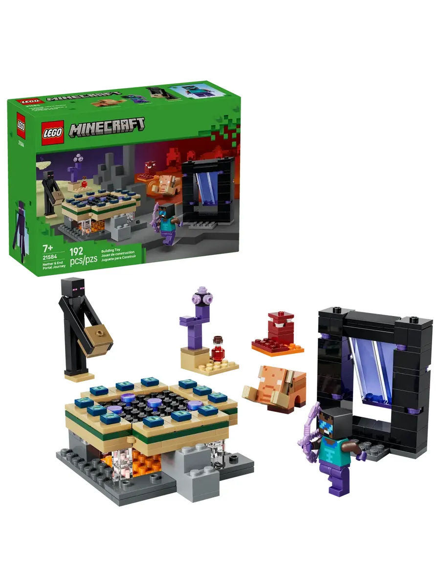 Отправляйтесь в увлекательное игровое приключение вместе с игровой игрушкой Nether & End Portal Journey (21584) для мальчиков и девочек от 7 лет. Пройдите через порталы, чтобы исследовать постройки в каждом биоме, и отправляйтесь навстречу приключениям с мини-фигуркой Крутого героя, а также с фигурками странника Края и детёныша хоглина. В этом игровом наборе LEGO Minecraft есть портал в Край и портал в Нижний мир с функциями доступа к небольшим постройкам в каждом биоме. Оригинальные аксессуары, в том числе зачарованный лук и зелье исцеления, вдохновят вас на бесконечные творческие приключения со знакомыми сценами и персонажами Minecraft. Этот набор станет отличным подарком для игроков Minecraft, конструкторов LEGO и любителей игрового декора.