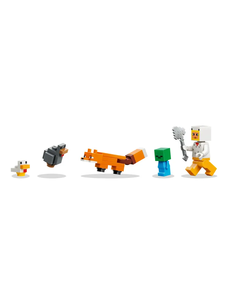 В этом детском игровом конструкторе игрокам предстоит ухаживать за холодным цыпленком и цыпленком-бройлером с помощью минифигурки Куриного веера, а также бороться с лисой (которая любит есть холодного цыпленка) и маленьким зомби (который любит кататься на цыплятах).