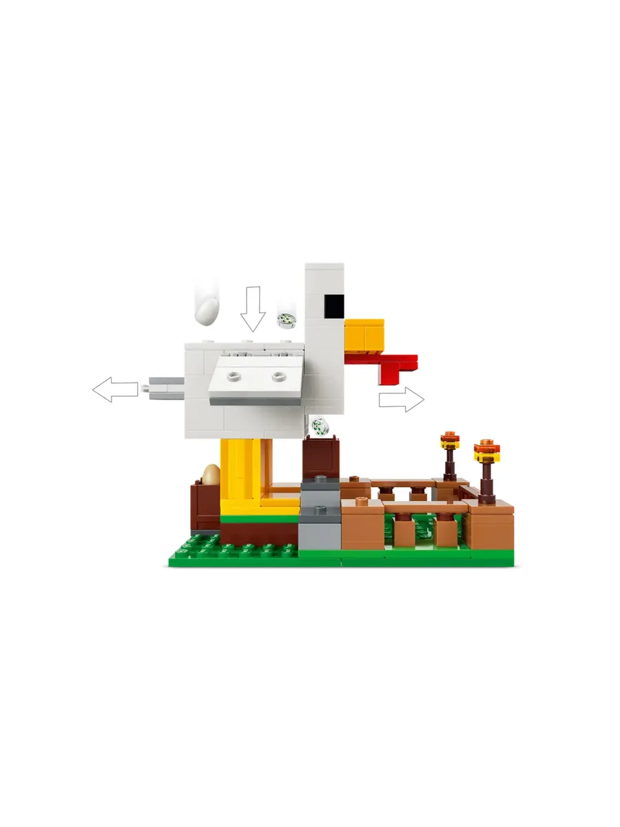 Курятник для ролевой игры выполнен в форме курицы с подвижными крыльями и загоном с открывающимися воротами. Гигантская курица откладывает яйца сзади и высыпает семена изо рта в контейнер, который наклоняется вперёд, когда курам нужна еда.