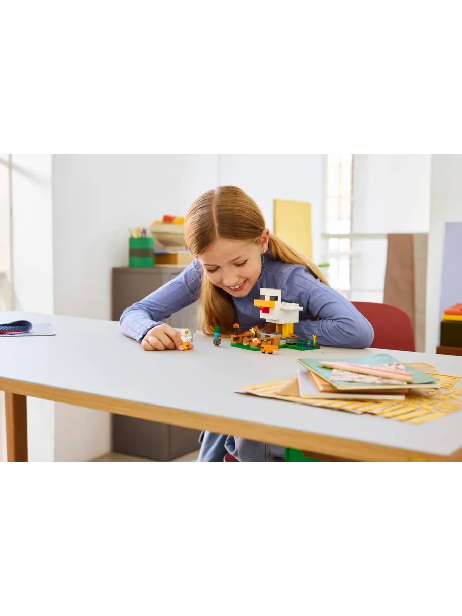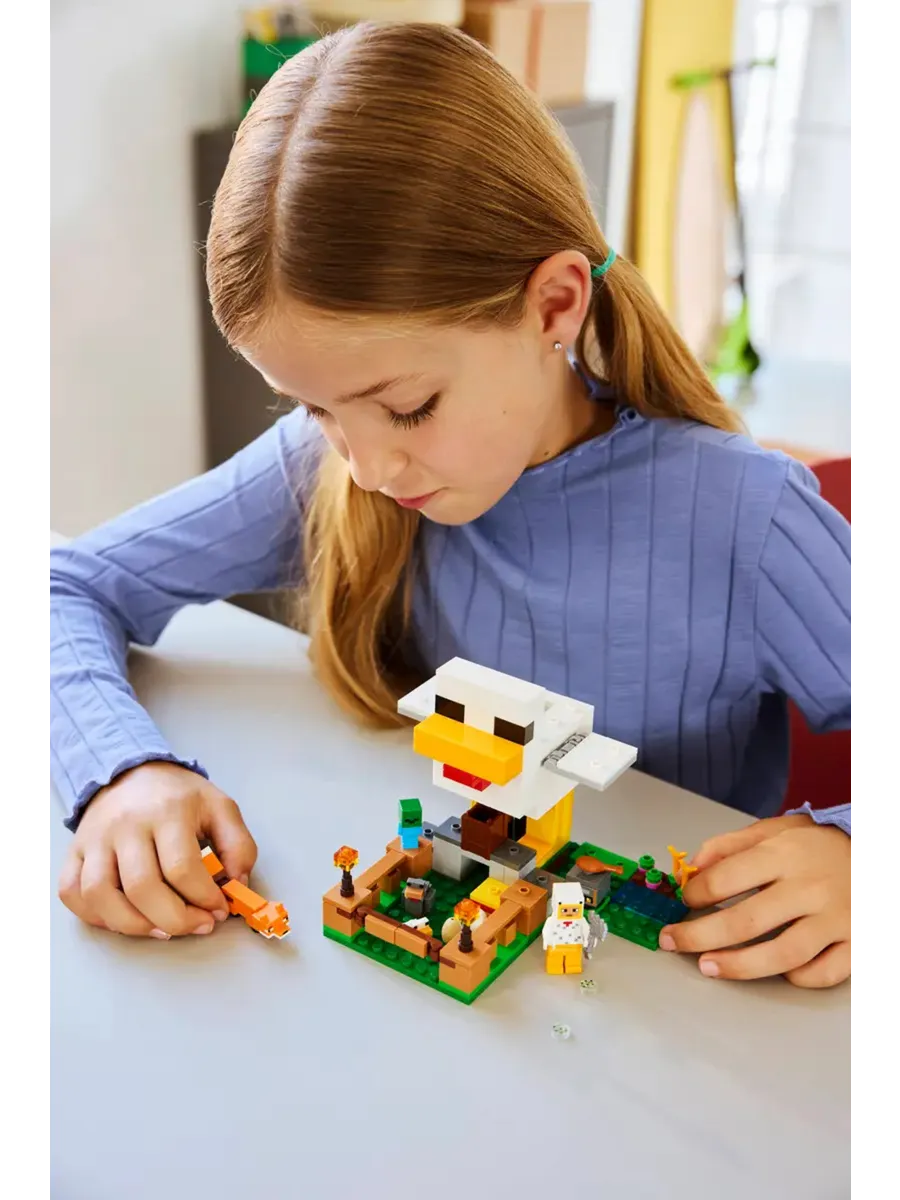 Ухаживайте за цыплятами и выращивайте урожай с помощью игровой игрушки LEGO Minecraft «Куриная ферма» (21585) для девочек и мальчиков от 7 лет.