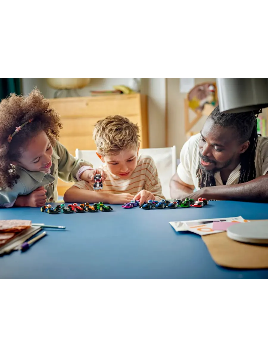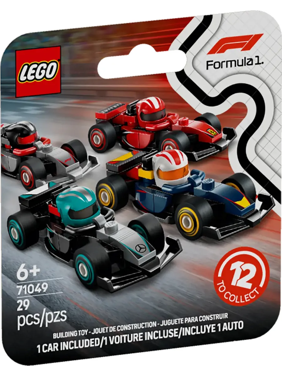 В каждом наборе есть 1 коллекционный гоночный автомобиль LEGO F1, а всего их 12: автомобиль F1, автомобиль F1 ACADEMY и 10 автомобилей команд Формулы-1: RB20, Mercedes-AMG, Ferrari, McLaren, Aston Martin, Alpine, Williams, VCARB, Sauber и Haas.