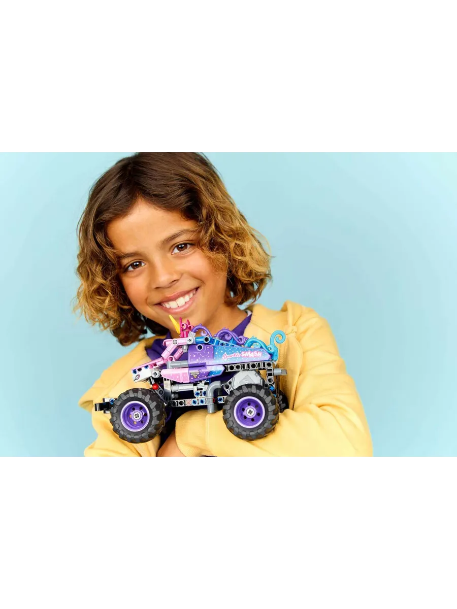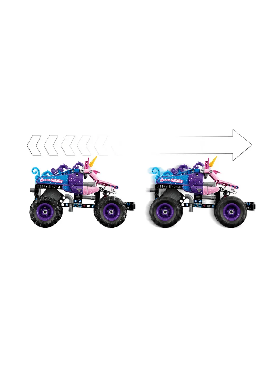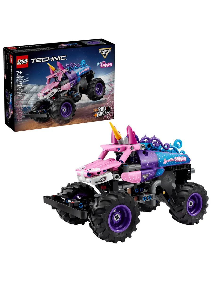 Набор LEGO Technic Monster Jam Sparkle Smash с инерционным двигателем (42220) подарит часы веселья мальчикам и девочкам от 7 лет и старше, которые любят монстр-траки и единорогов.