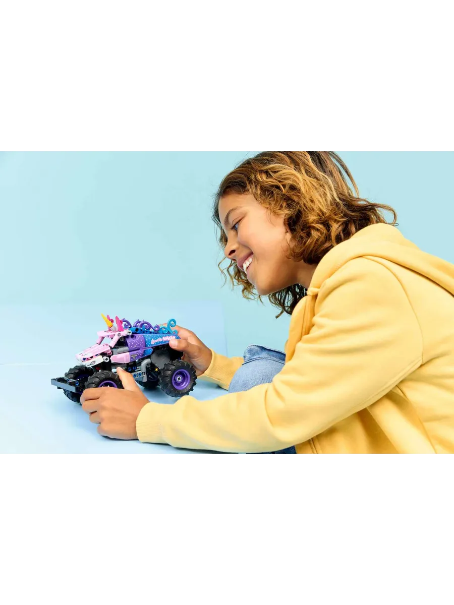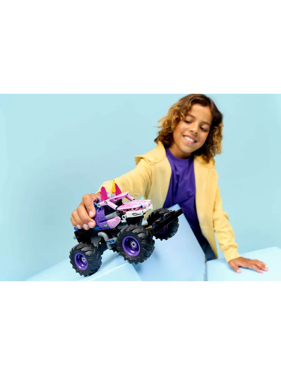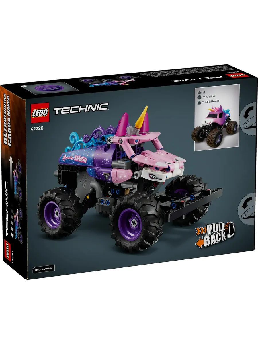 Набор LEGO Technic Monster Jam Sparkle Smash с инерционным двигателем (42220) подарит часы веселья мальчикам и девочкам от 7 лет и старше, которые любят монстр-траки и единорогов.