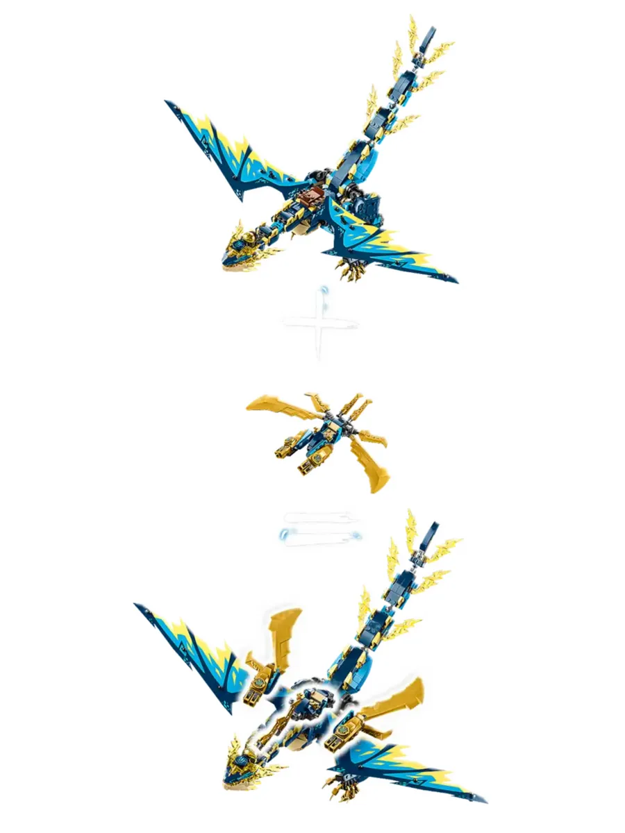 Улучшаемый дракон-ниндзя — дракона Джиро можно превратить в более крупную и внушительную модель, добавив ему крылья с золотыми лезвиями и шипы-стрелы из флайера.