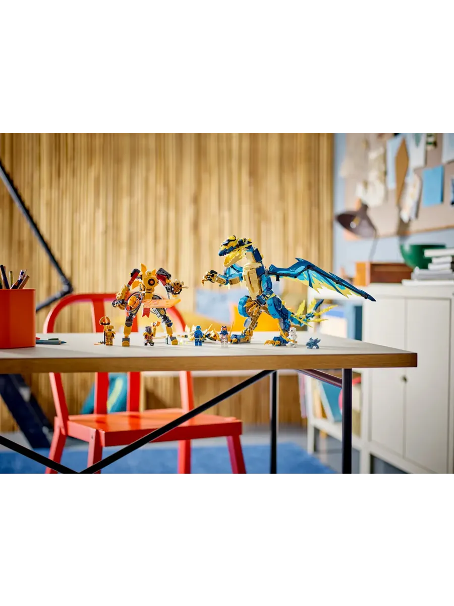 Игровой набор «Дракон и робот» — дети от 9 лет могут разыграть эпическую битву из мультсериала NINJAGO «Драконы: Восстание» с набором «Элементарный дракон против Императрицы-робота» (71796).