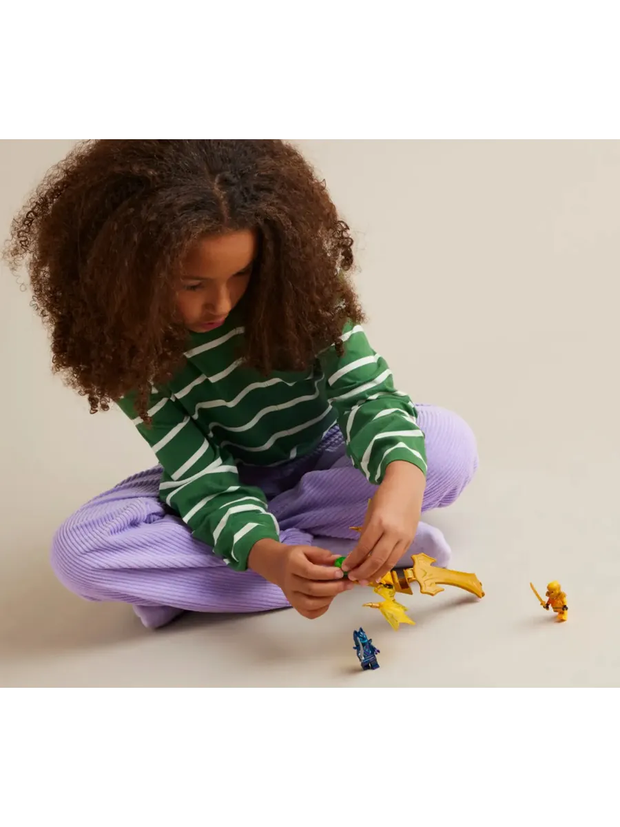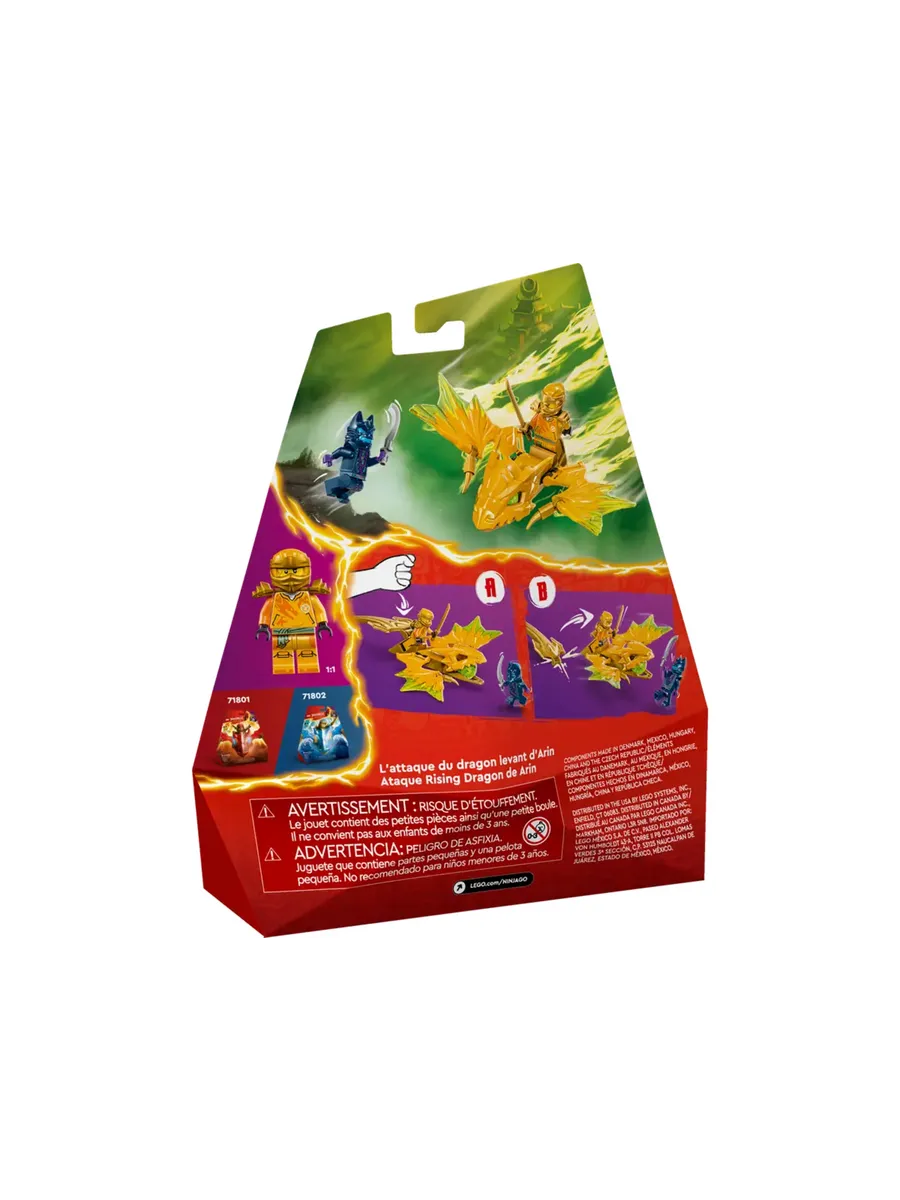 Мальчики и девочки от 6 лет могут воссоздать свои любимые сцены из 2-го сезона мультсериала «НИНДЗЯГО: Восстание драконов» с помощью игрушки-ниндзя «Удар восходящего дракона Арина» (71803). Детям понравится собирать первую в истории игрушку-дракона LEGO NINJAGO, а затем обрушивать на дракона его золотой хвост и наблюдать, как он вступает в эпические сражения.