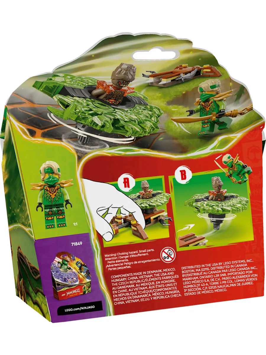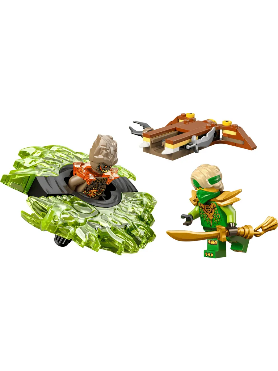 Этот универсальный небольшой набор LEGO также включает в себя две минифигурки: Ллойда с мечом и злого Земного Монстра, вращающегося внутри механизма. С этими двумя персонажами NINJAGO дети могут разыгрывать бесчисленные битвы между добром и злом.