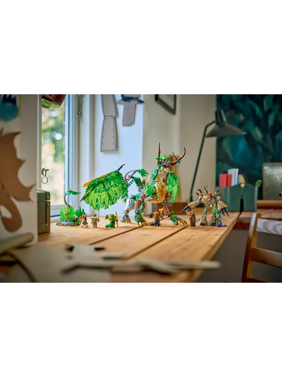 Мальчики и девочки от 9 лет будут в восторге от этой игрушки LEGO NINJAGO «Дракон жизни» (71859) в виде ниндзя, а затем смогут воссоздать сцены из 4-го сезона мультсериала «Ниндзяго: Восстание драконов». Эта игрушка-дракон может широко расправлять и поджимать крылья, а также двигать челюстью, головой, шеей, ногами, лодыжками, когтями, хвостом и седлом для минифигурки. В игровой набор входит боковая конструкция с деревом и растением, которое дети могут вращать, чтобы достать аксессуар в виде золотого меча, а также подвижная мини-игрушка-робот с кабиной для минифигурки.