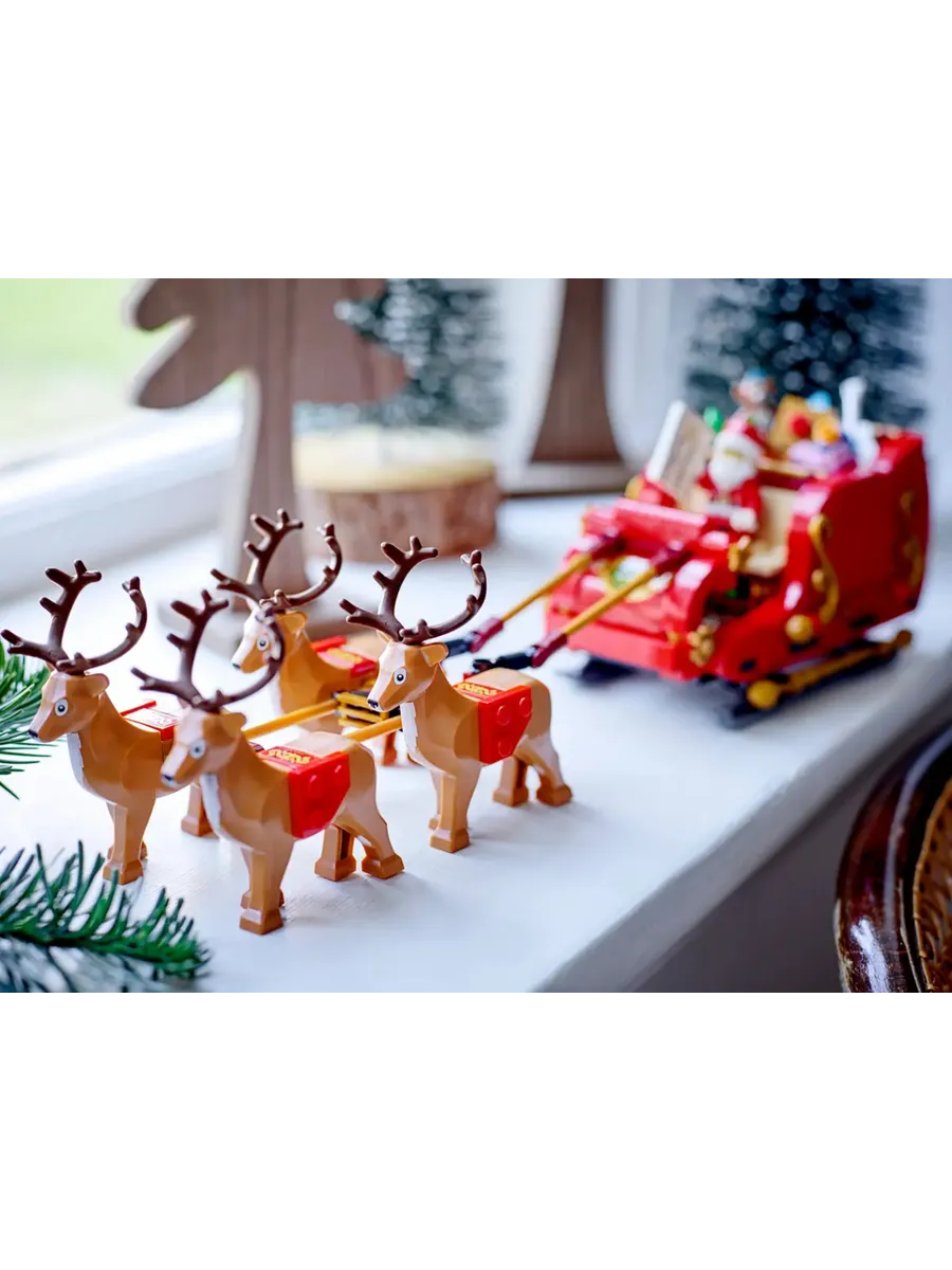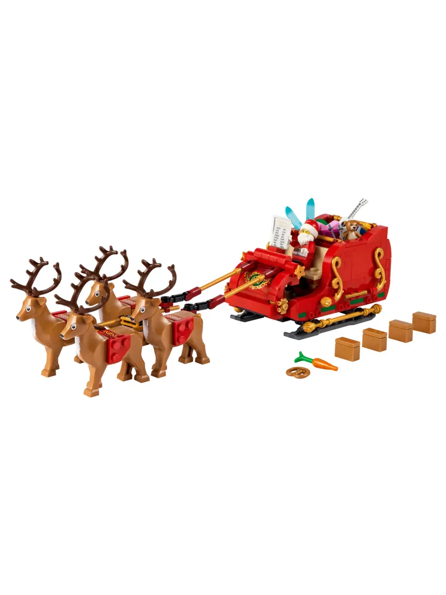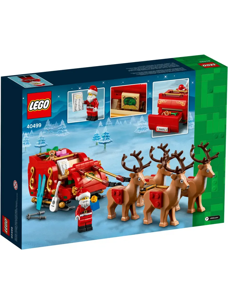 Санта-Клаус едет в город! Добавьте праздничного настроения в свой дом в это Рождество с помощью набора LEGO «Сани Санты» (40499). Детям и взрослым понравится собирать и демонстрировать декоративные сани, в комплект которых входят 4 фигурки оленей и минифигурка LEGO Санты. Разумеется, у Санты есть список тех, кто хорошо себя вёл в этом году! В санях полно игрушек и подарков, включая гитару, лыжи и плюшевого мишку. Дети могут даже устроить со своими друзьями охоту за сокровищами. Смогут ли они найти спрятанные рождественские угощения?