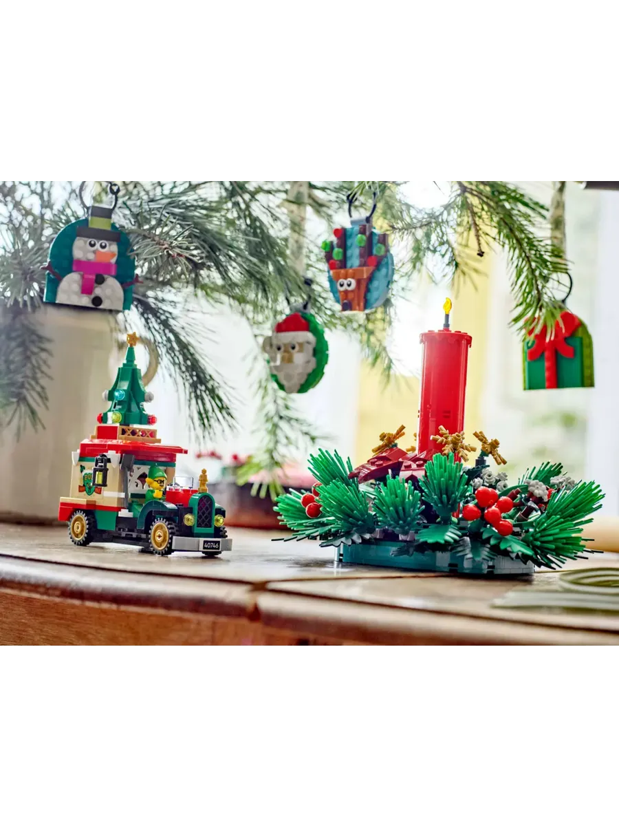 Этот рождественский игровой набор LEGO, наполненный волшебными элементами, позволяет детям почувствовать себя помощниками Санты. Они собирают игрушечный грузовик и открывают для себя волшебство внутри него. В грузовике можно найти рождественские подарки, а на крыше установлена миниатюрная ёлочная игрушка. Среди других волшебных элементов — письмо, мешок Санты и лист с наклейками для украшения. Грузовик, воплощающий волшебство в жизнь, управляется мини-фигуркой эльфа, которую можно посадить внутрь. Это пробуждает воображение и позволяет детям придумывать приключения на Северном полюсе.