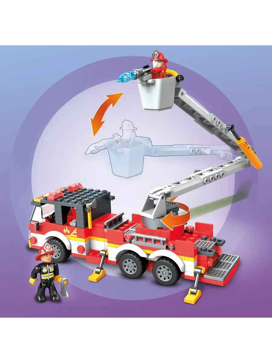 Выезжайте на экстренный вызов тушить возгорание на крутой пожарной машине в компании с двумя бравыми спасателями! Окажитесь на месте происшествия как можно быстрее и спасите людей от пожара. Соберите пожарную машину из 244 деталей и разыграйте множество невероятных миссий и опасных спасательных операций. Посадите фигурки спасателей в защитных шлемах, масках и жилетах за руль и отправляйтесь на борьбу с огнем. С помощью выдвижной поворотной лестницы ликвидируйте пожар, а затем поспешите на следующий вызов.