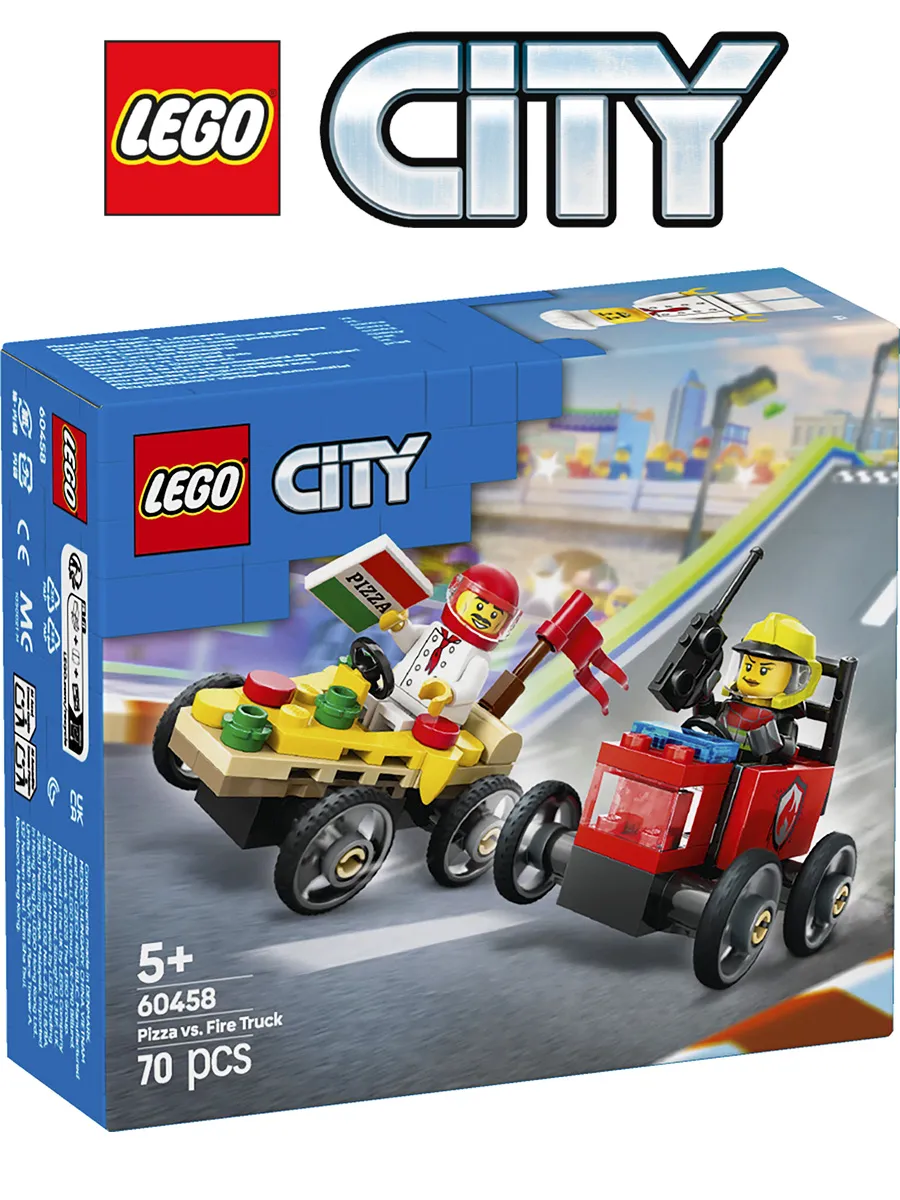 Набор для гонок на игрушечных машинках — подарите юному фанату гонок набор LEGO City Pizza vs. Пожарная машина для детей от 5 лет