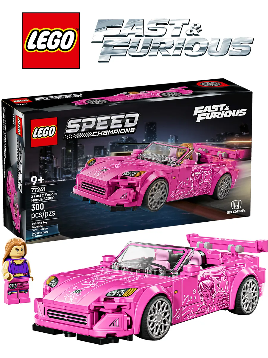 Поклонники кино, а также мальчики и девочки от 9 лет и старше могут воссоздать сцены из культового фильма «Форсаж 2» с помощью этой автомобильной игрушки LEGO Speed Champions 2 Fast 2 Furious Honda S2000 (77241). Этот ярко-розовый мини-автомобиль с откидным верхом для детей имеет аутентичные детали дизайна, как у настоящего автомобиля, на котором гоняла Сюки в знаменитом фильме.