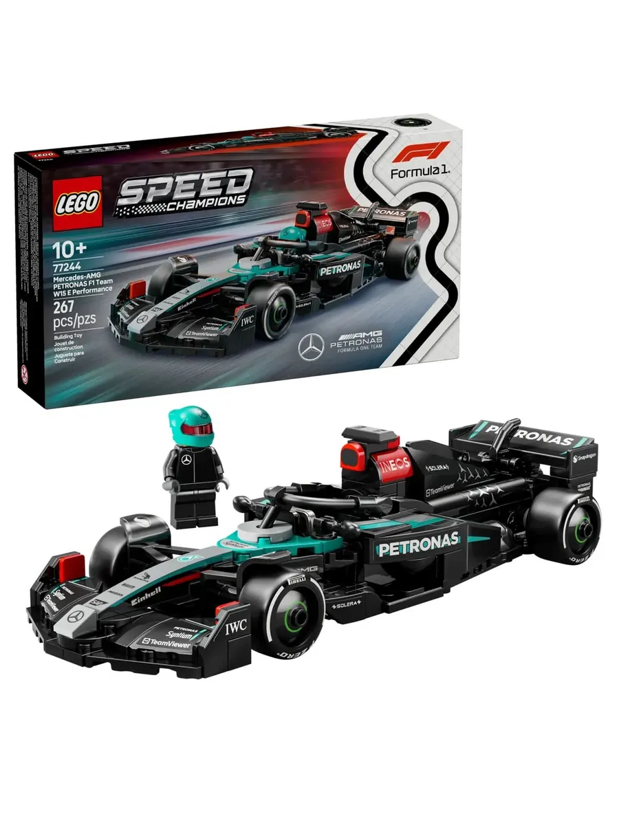Мальчики и девочки в возрасте от 10 лет и старше могут собирать, конструировать, демонстрировать и участвовать в гонках на этом потрясающем игрушечном автомобиле LEGO Speed Champions Mercedes-AMG PETRONAS F1 (77244). Элегантный гоночный автомобиль Mercedes-AMG F1 для детей и поклонников команды Mercedes-AMG PETRONAS F1 включает в себя детали дизайна автомобиля, участвовавшего в чемпионате мира Формулы-1 2024 года.