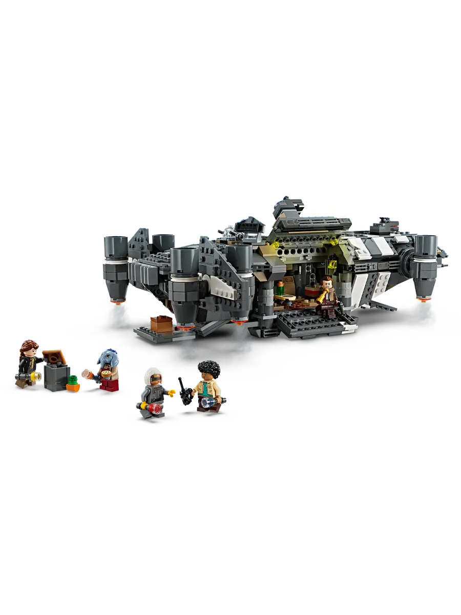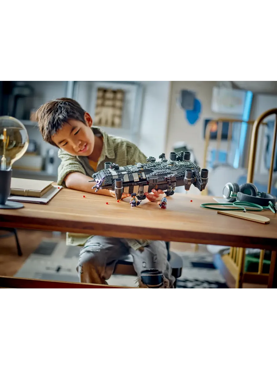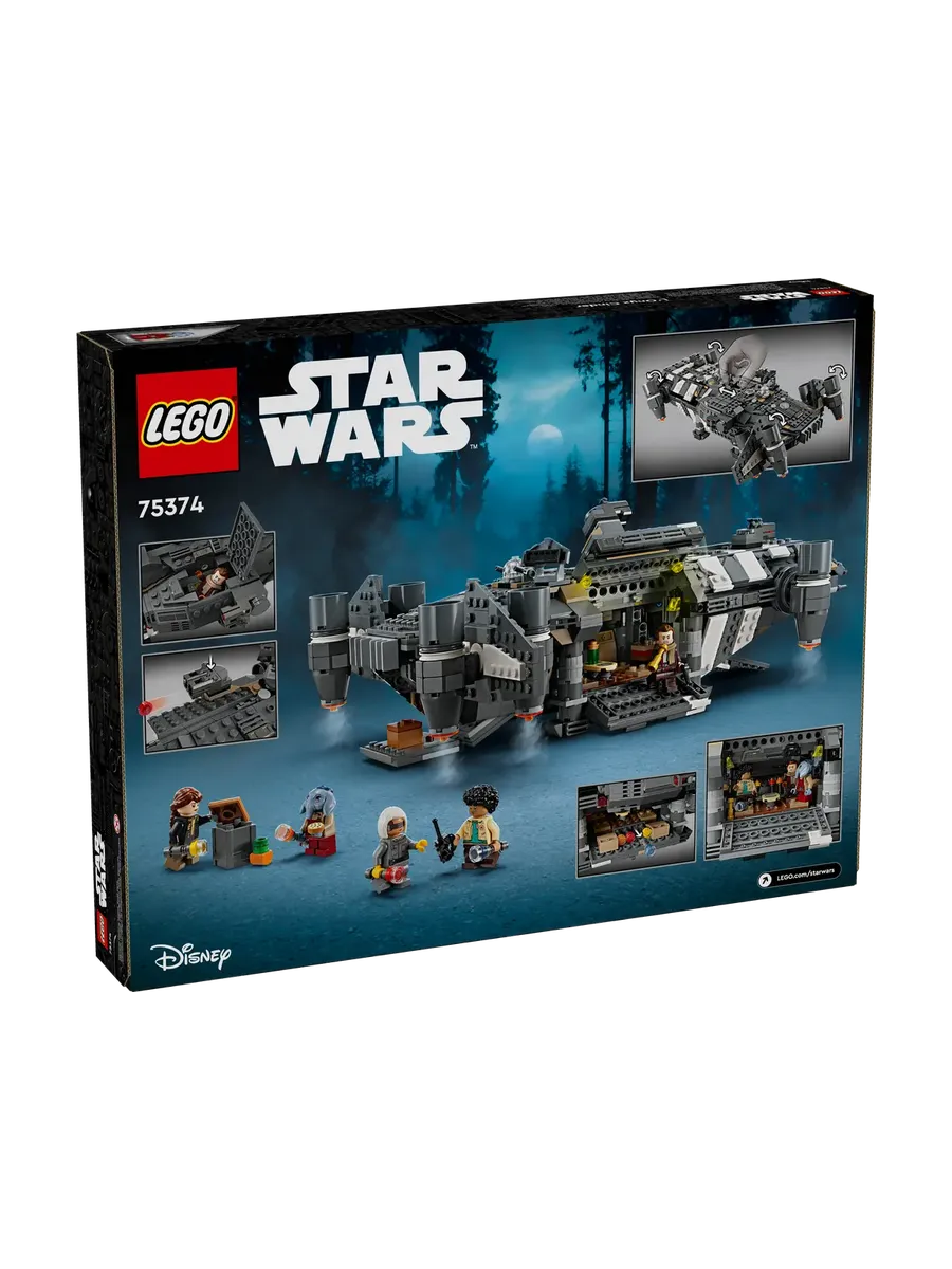 Дети становятся героями собственных историй «Звёздных войн»: «Команда скелетов» с подробной реконструкцией «Ониксовой золы» из кирпичиков LEGO (75374). Эта коллекционная игрушка LEGO «Звёздные войны» в виде собираемого космического корабля оснащена вращающимися двигателями для посадки/взлёта или полёта, 2 стреляющими шипами пушками, 2 вращающимися турелями, каждая с 2 стреляющими шипами пушками, и хватательной клешней. В нём есть места для всех 5 персонажей LEGO «Звёздные войны» (минифигурка Йода в кабине пилота и Вим, Ферн, КБ и Нил в пассажирском отсеке), а также место для хранения 4 сборных фонариков и другого груза. В нём также есть кухонный стол и кровать, а также аксессуары, в том числе фрукты и рация, которые вдохновят вас на творческую игру.