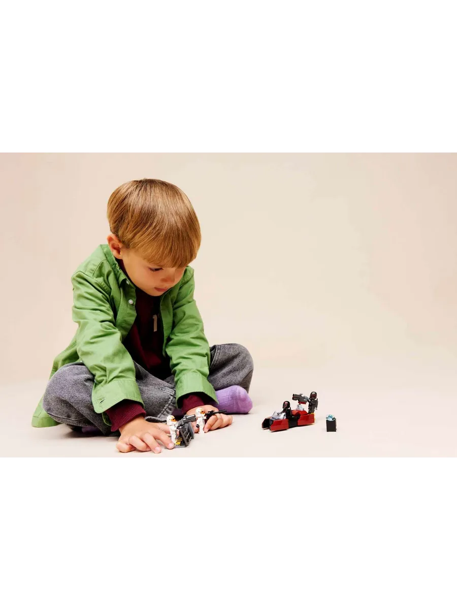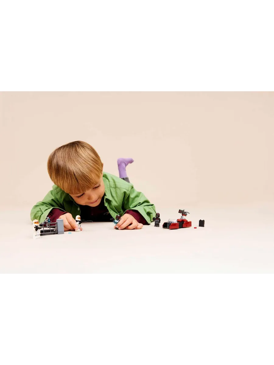 В набор входят 4 минифигурки LEGO Star Wars – 2 суперкоммандос-мандалорца и 2 клона-солдата 332-й роты в образе Асоки. Баррикада клонов-солдат и другие аксессуары также обеспечат массу захватывающих приключений. Активируйте бластер спидера. Пушка на баррикадах может вести ответный огонь. Прикрепите реактивные ранцы к суперкоммандос, чтобы они могли атаковать с воздуха из своих бластерных пистолетов.