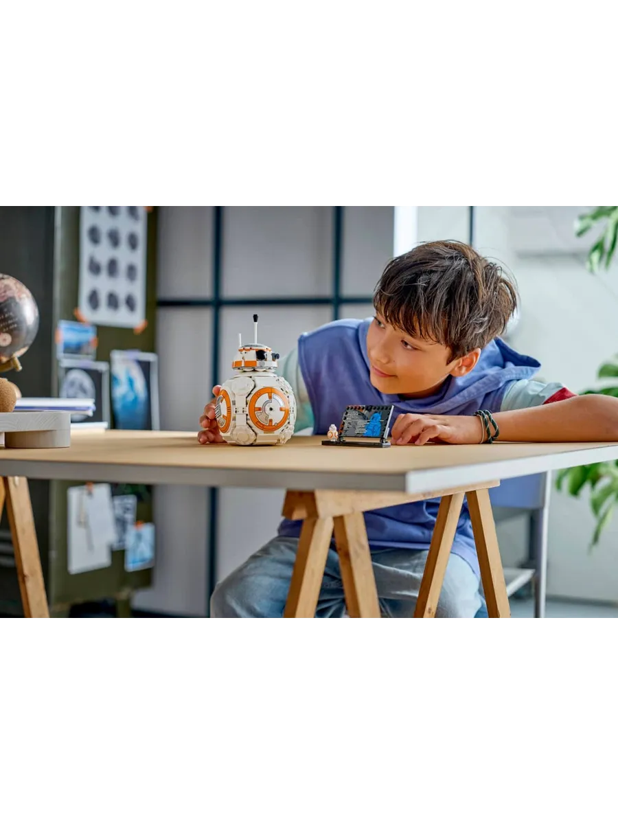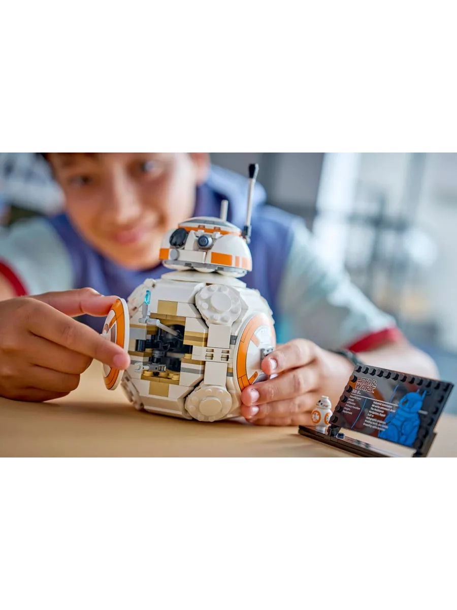 Поместите сборную модель рядом с информационной табличкой BB-8 и фигуркой BB-8 LEGO стандартного размера, чтобы создать очаровательный декор в стиле «Звездных войн», который вызовет улыбку у любого фаната.