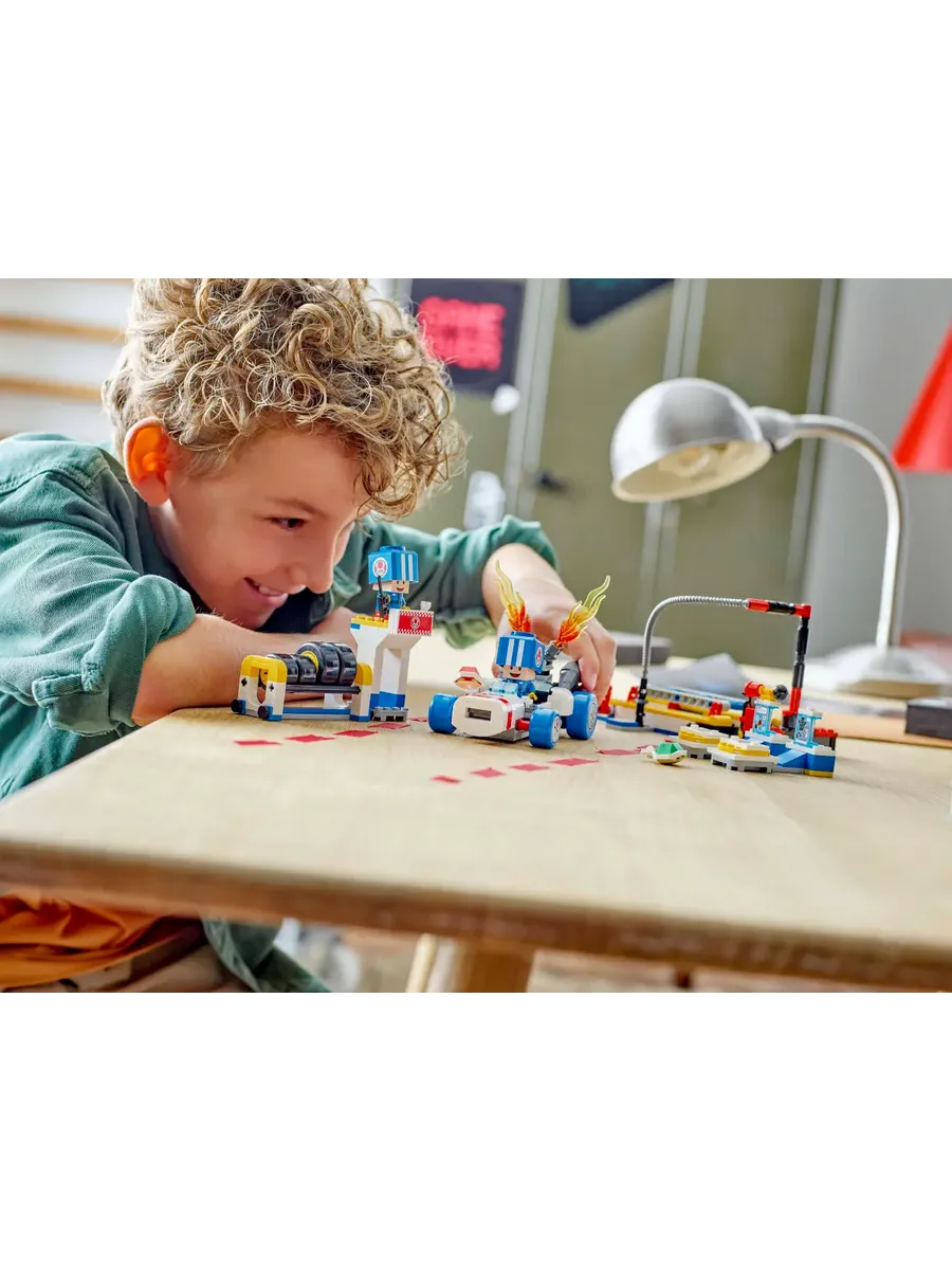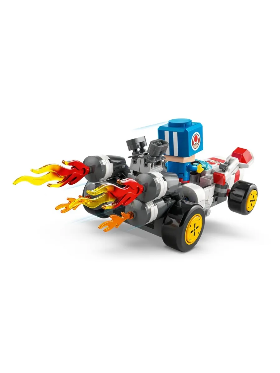 Интерактивная игра — поместите LEGO Марио, LEGO Луиджи или LEGO Пич (фигурки не входят в комплект) в картинг или на интерактивные метки в машинах для персонализации для цифрового взаимодействия