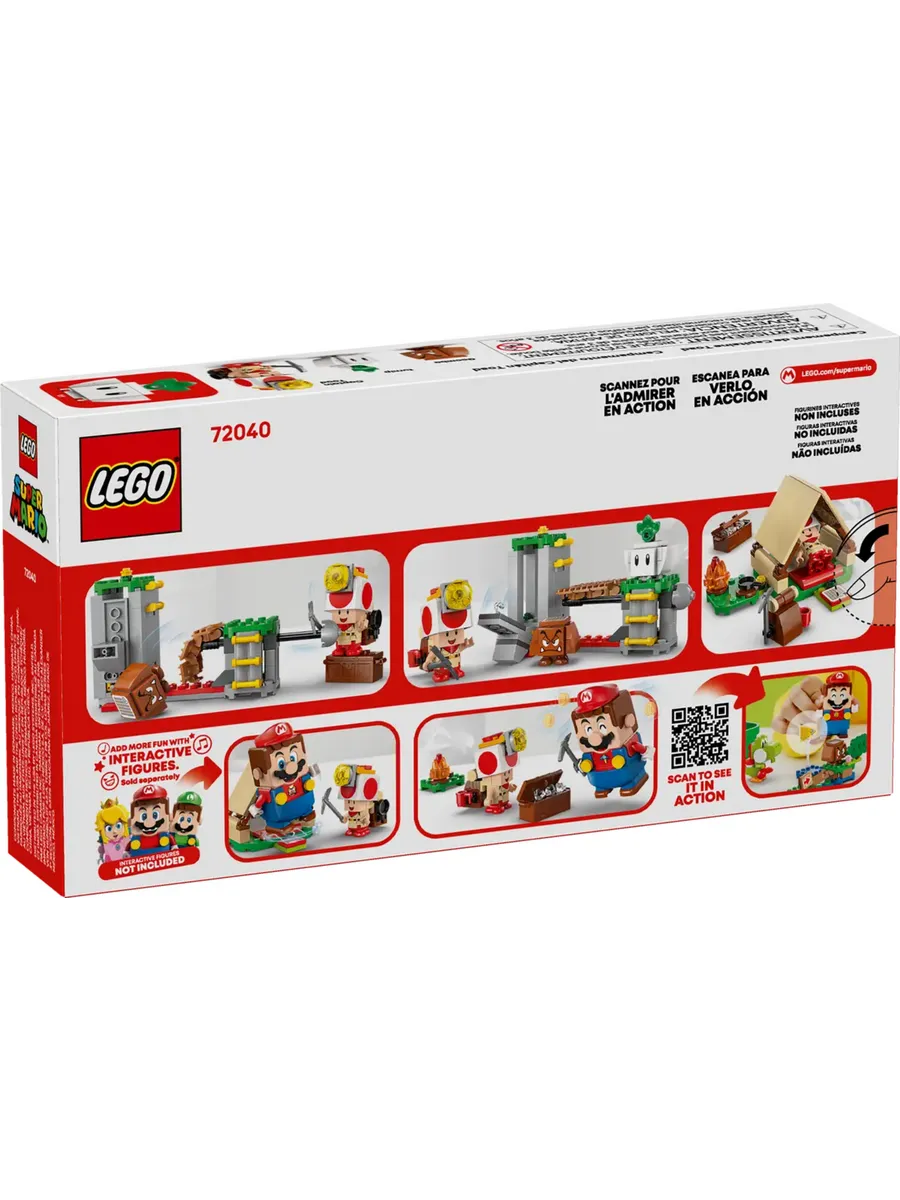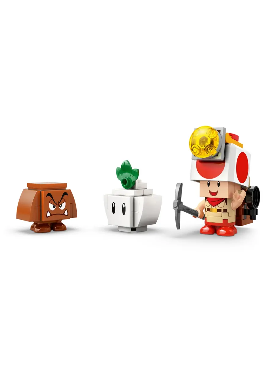 3 фигурки LEGO Super Mario для увлекательной ролевой игры. В этот набор Nintendo LEGO входят фигурки Капитана Тоада, репки и Гумбы, а также рюкзак, кирка, кастрюля и алмазные аксессуары