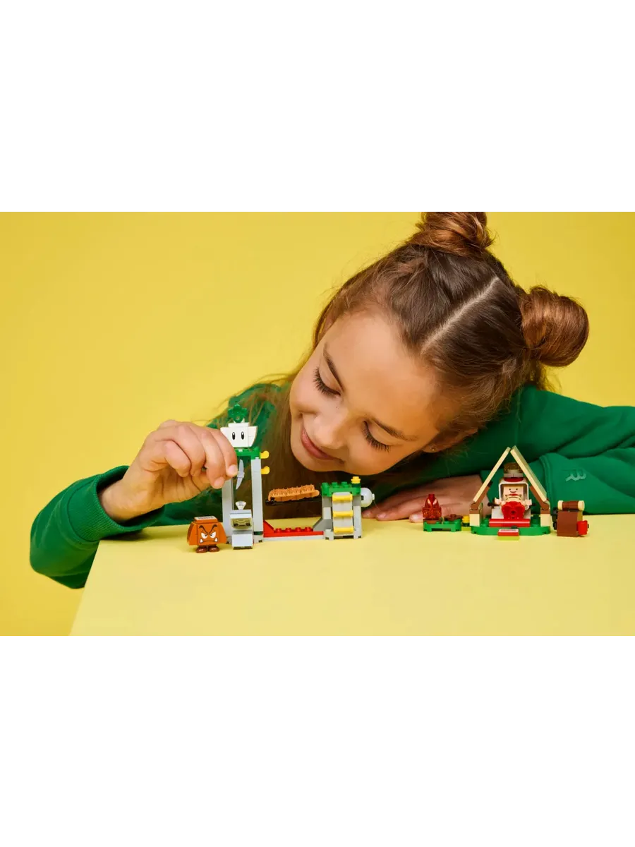 Интерактивная игра — прыгайте на метку Action Tag в палатке (а также на Гумба и репу) с LEGO Марио, LEGO Луиджи или LEGO Пич (фигурки в комплект не входят), чтобы получить цифровые реакции.