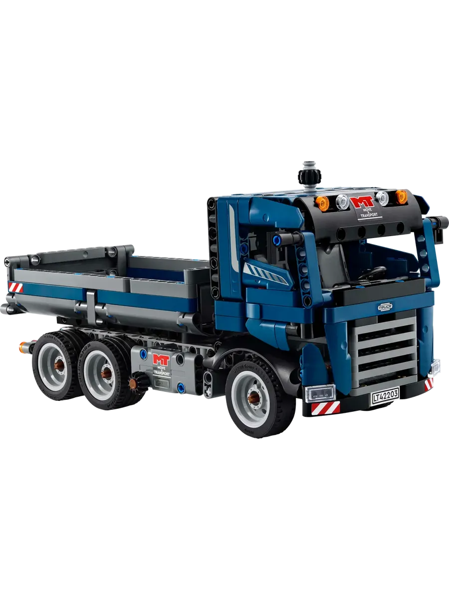 Дети в возрасте от 9 лет и старше могут придумывать бесконечные приключения на строительной площадке с помощью игрушки LEGO Technic «Самосвал с откидным кузовом» (42203). Этот синий игрушечный самосвал позволяет детям в возрасте от 9 лет и старше представить себе напряжённый рабочий день за рулём самосвала. Приведите самосвал в нужное положение, затем поверните ручку сбоку, чтобы откинуть кузов. Откройте двери, чтобы заглянуть внутрь кабины, а затем отвезите самосвал на следующую строительную площадку.
